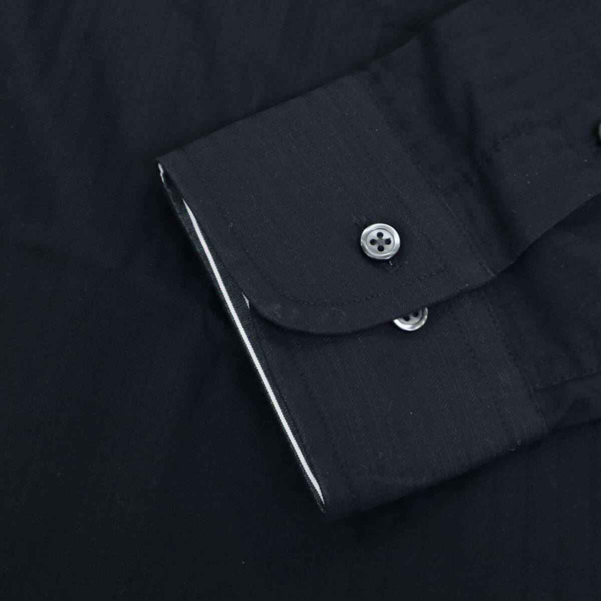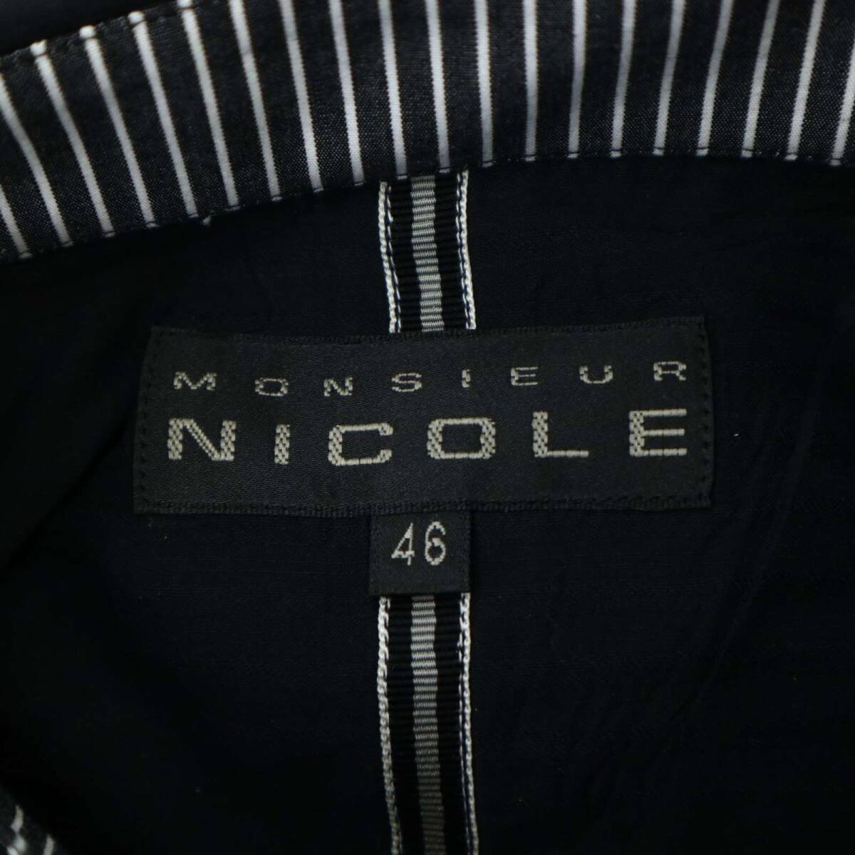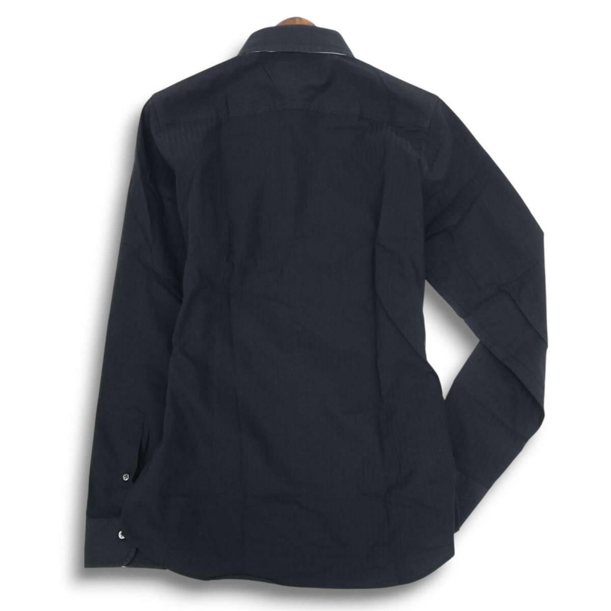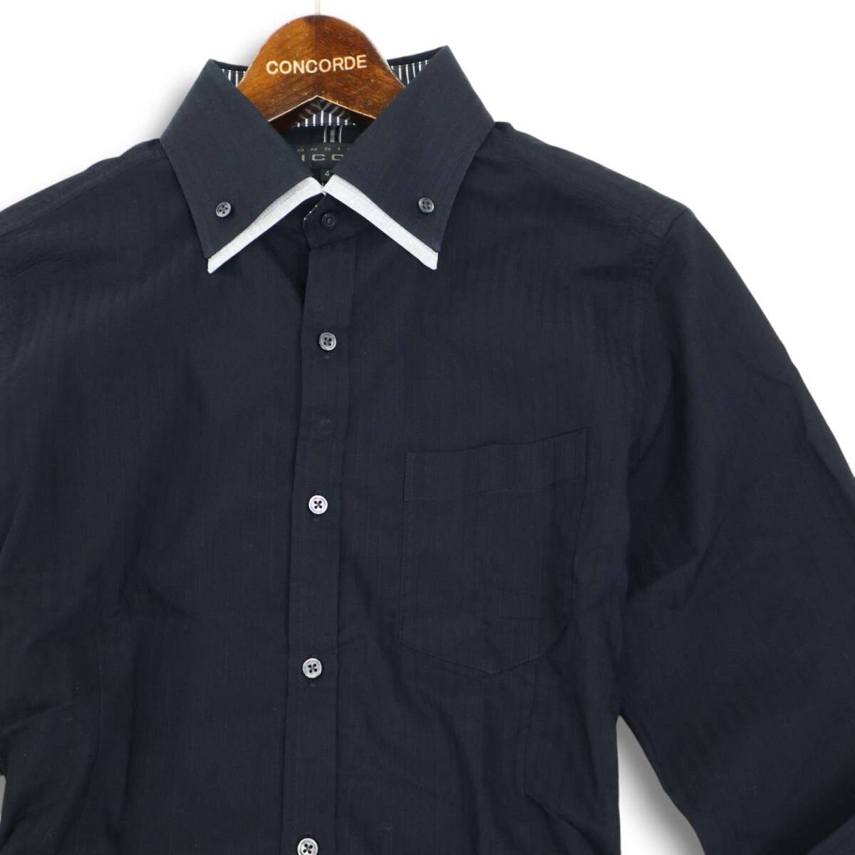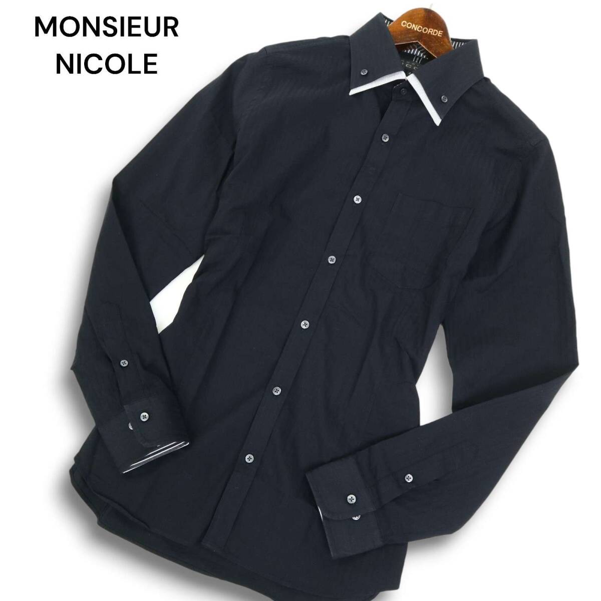 MONSIEUR NICOLE ムッシュ ニコル 通年 二重襟★ 長袖 ボタンダウン スリム シャツ Sz.46 メンズ 黒