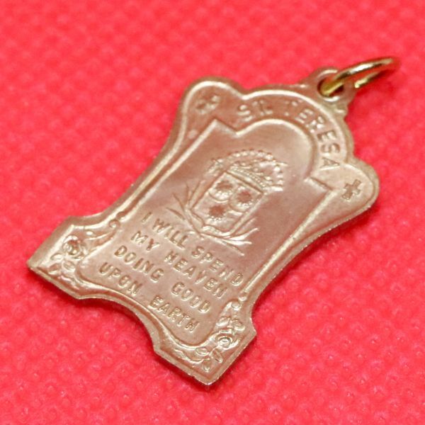 金属製の宗教的ペンダント、聖テレサの名言入り。 - Material: Metal - Design: Religious pendant featuring a figure of a saint - Text: St. Teresa: 'I will spend my heaven doing good upon earth' ご覧いただきありがとうございます。 サイズ トップサイズ/25.8×16×1.8mm 素材/真鍮 複数個購入可能 複数ご購入の方は事前にご連絡下さい。 ■即購入OK 返信遅くなることが多いのでご希望の商品があればコメントなしでそのままご購入くださいませ。 ■注意事項 ・モニターの関係により実際の商品と色味が異なる場合がございますので予めご了承ください。 ・サイズに関しては制作の段階で多少の誤差が生じる場合がございますので、予めご了承ください。 ・真鍮製の為、使用していくと独特のくすみが生まれて来ます。 ・真鍮製品の素材の性質上、初めから細かな傷が付いている場合もございますので予めご了承ください。 ・新品未使用品ですが、製品の性質上細かな傷が生じている場合がございますので予めご遠慮ください。