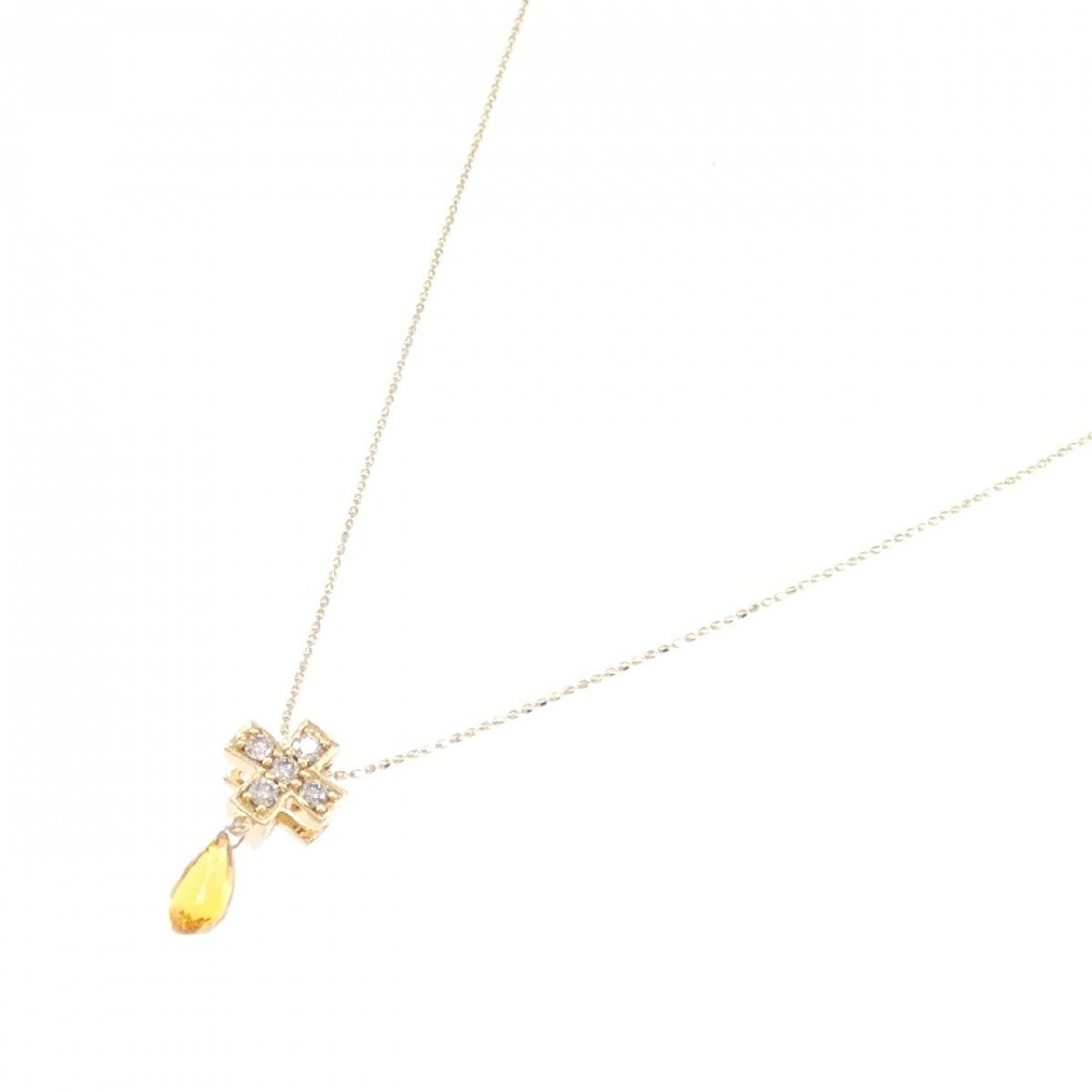 明るいオレンジカラーが印象的なサファイヤと煌めくダイヤモンドをあしらったネックレス。カジュアルスタイルにもお使いいただけるクロスモチーフです。