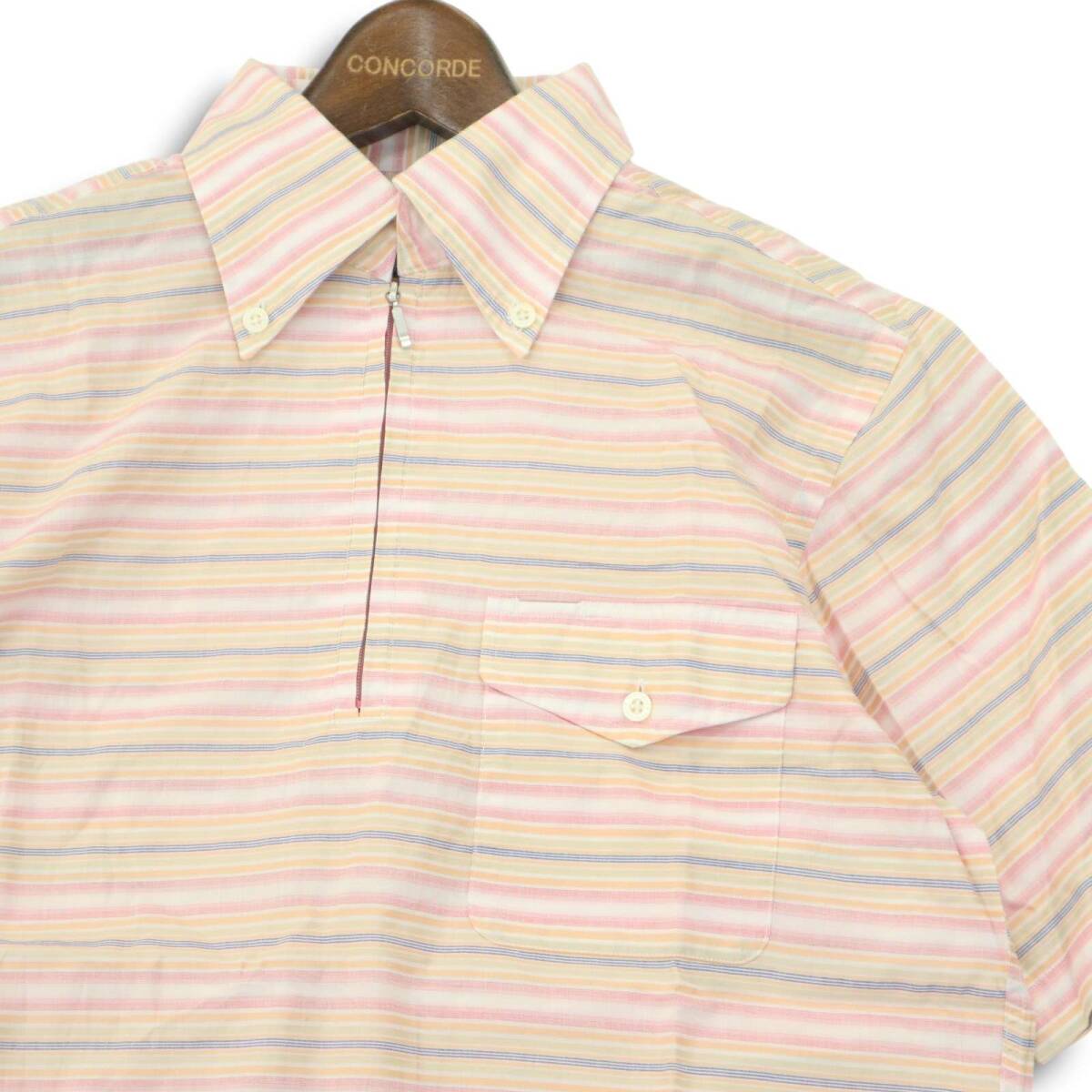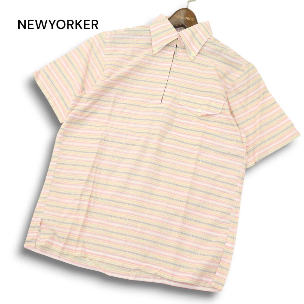 NEWYORKER ニューヨーカー 春夏★ ストライプ 半袖 ハーフジップ ボタンダウン ワーク シャツ Sz.M メンズ