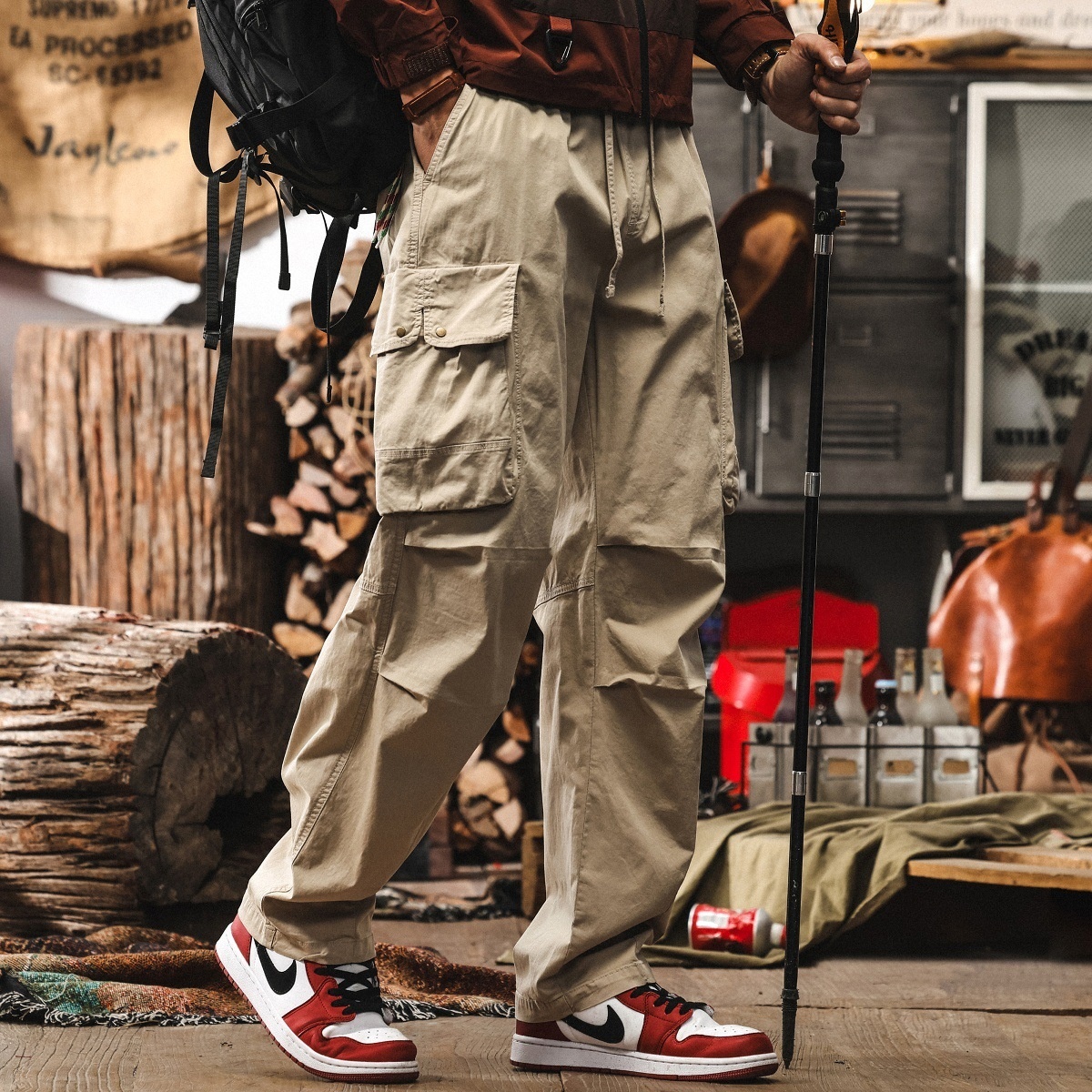 カーゴパンツ ワークパンツ メンズ*新品 アウトドアパンツ ウエスタン 春夏服 作業ズボン ボトムス【1254】杏色 2XL