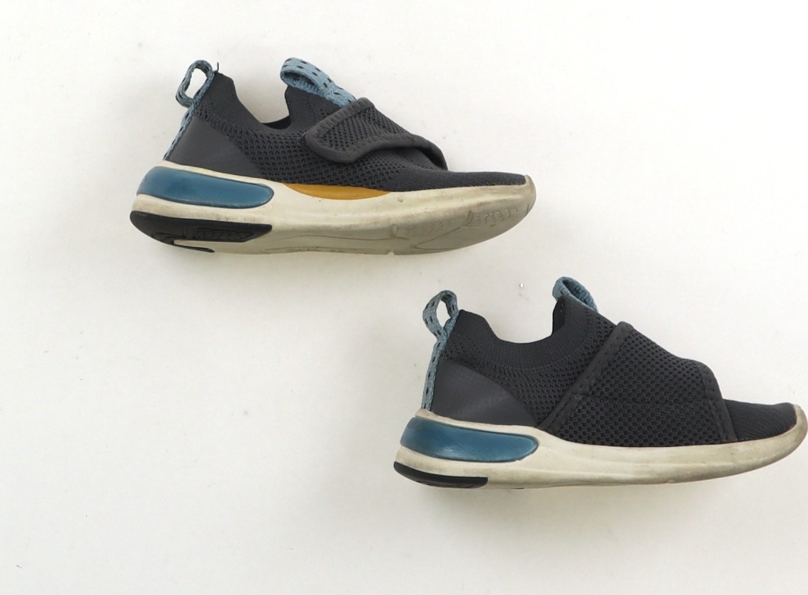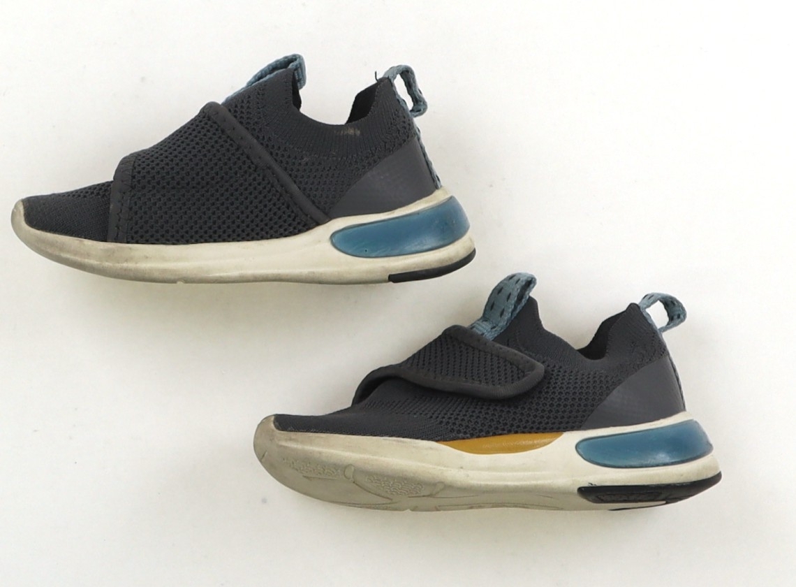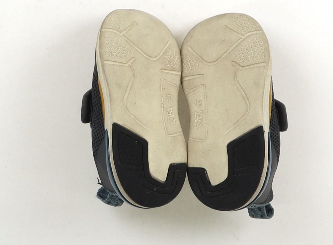 実際のサイズ表記は、23。サイズ表をご参照ください。マジックテープ留め。かかとに擦り減りあり。部分的に汚れあり。全体的に薄汚れていて、使用感があります。