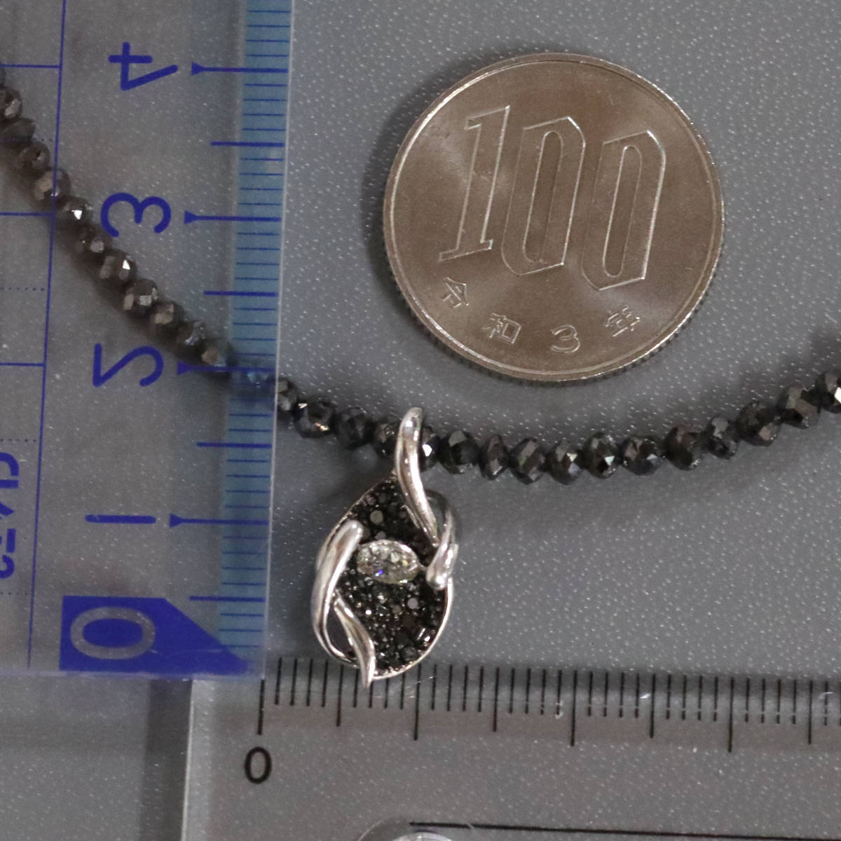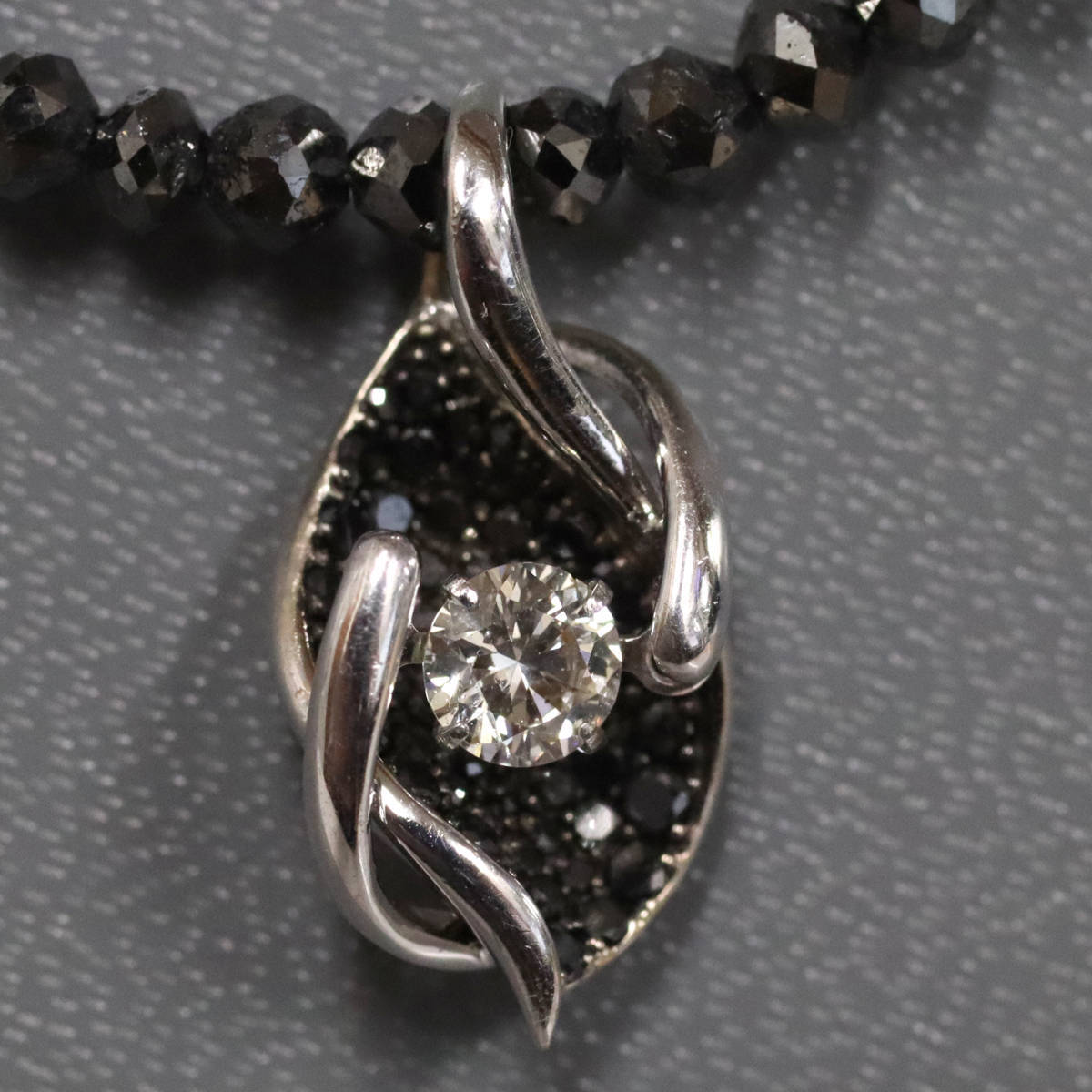 | ■ K18WGブラックダイヤモンド/ダイヤモンドペンダント BkD20.00 D0.40 BkD0.20 7.7g AJ付44cm ■ | |||||||||||||||||||||||||||||||||