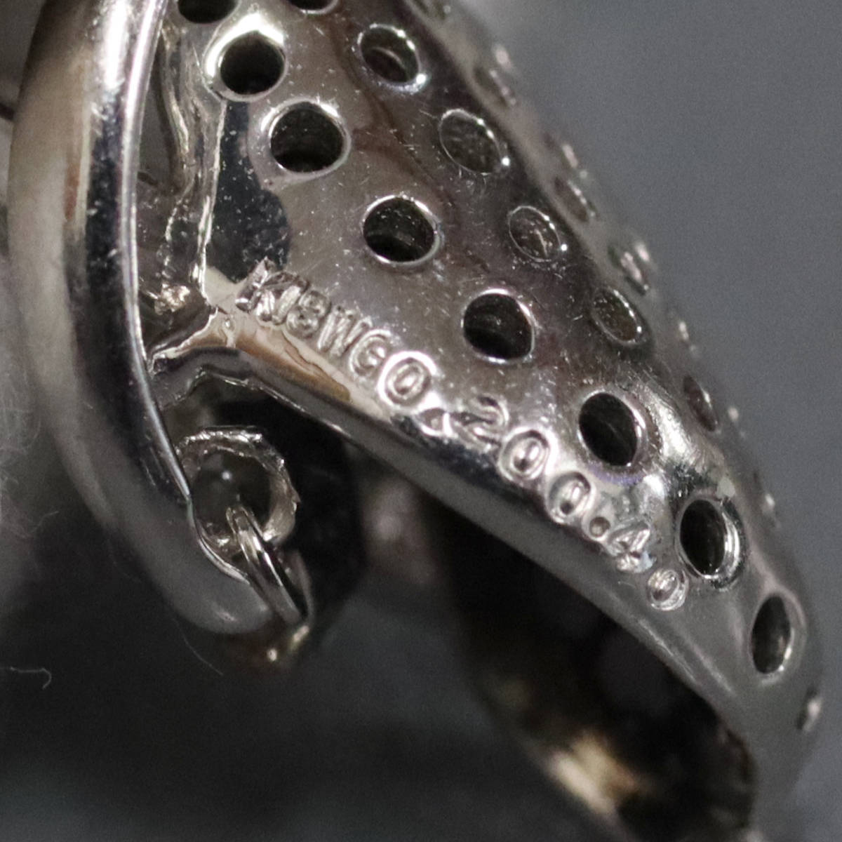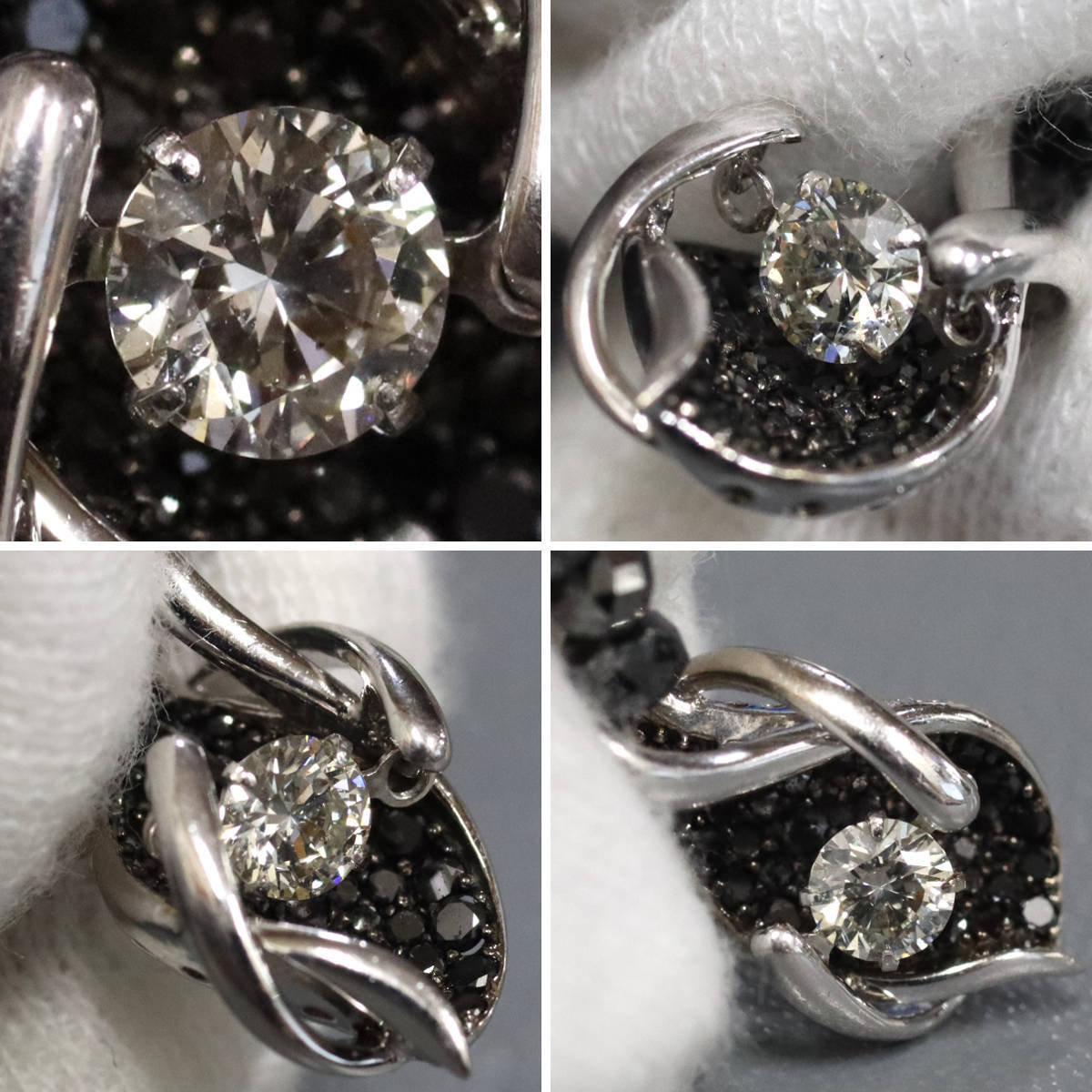 K18WGブラックダイヤモンド/ダイヤモンドペンダントの中古品です。 ペンダントトップのダイヤモンドがゆらゆらと動きます。 クロスフォー社のPCTナンバーが刻印されています。 ダイヤモンドはややインクルージョンがありますが、照りよく輝きます。 チェーンのブラックダイヤモンドは肉眼では見えませんが、部分的に表面に欠けがあります。 アジャスター付きですが少し緩いです。また、可変範囲が狭く、39cm~44cmの間で長さ調整可能です。 地金には小傷があります。