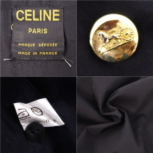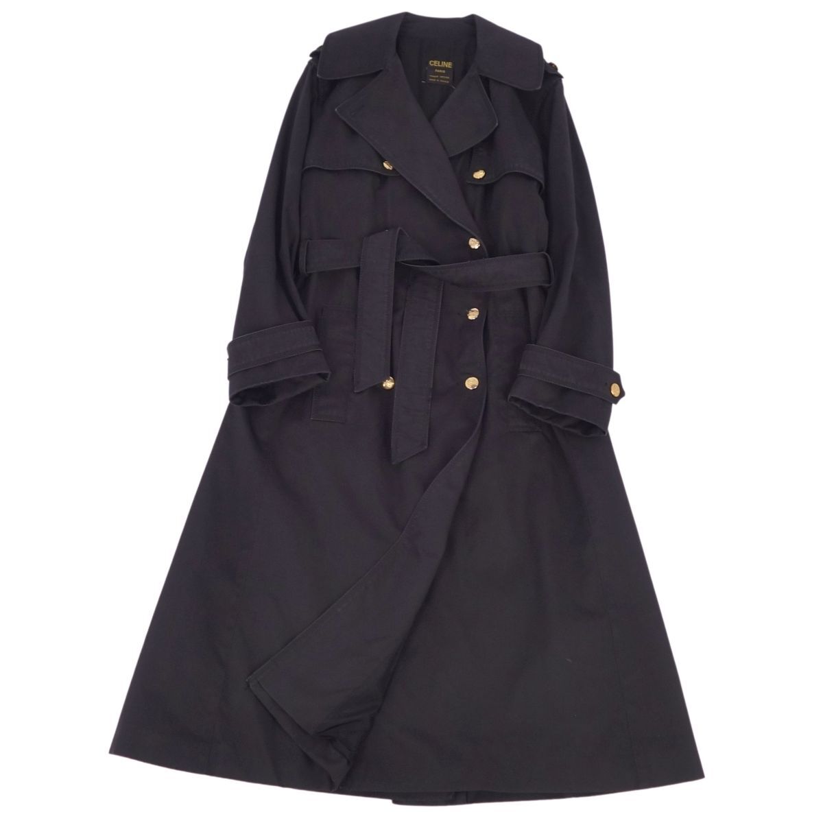 | 美品 Vintage セリーヌ CELINE コート トレンチコート コットン 馬車ボタン レディース フランス製 M相当 ブラック |