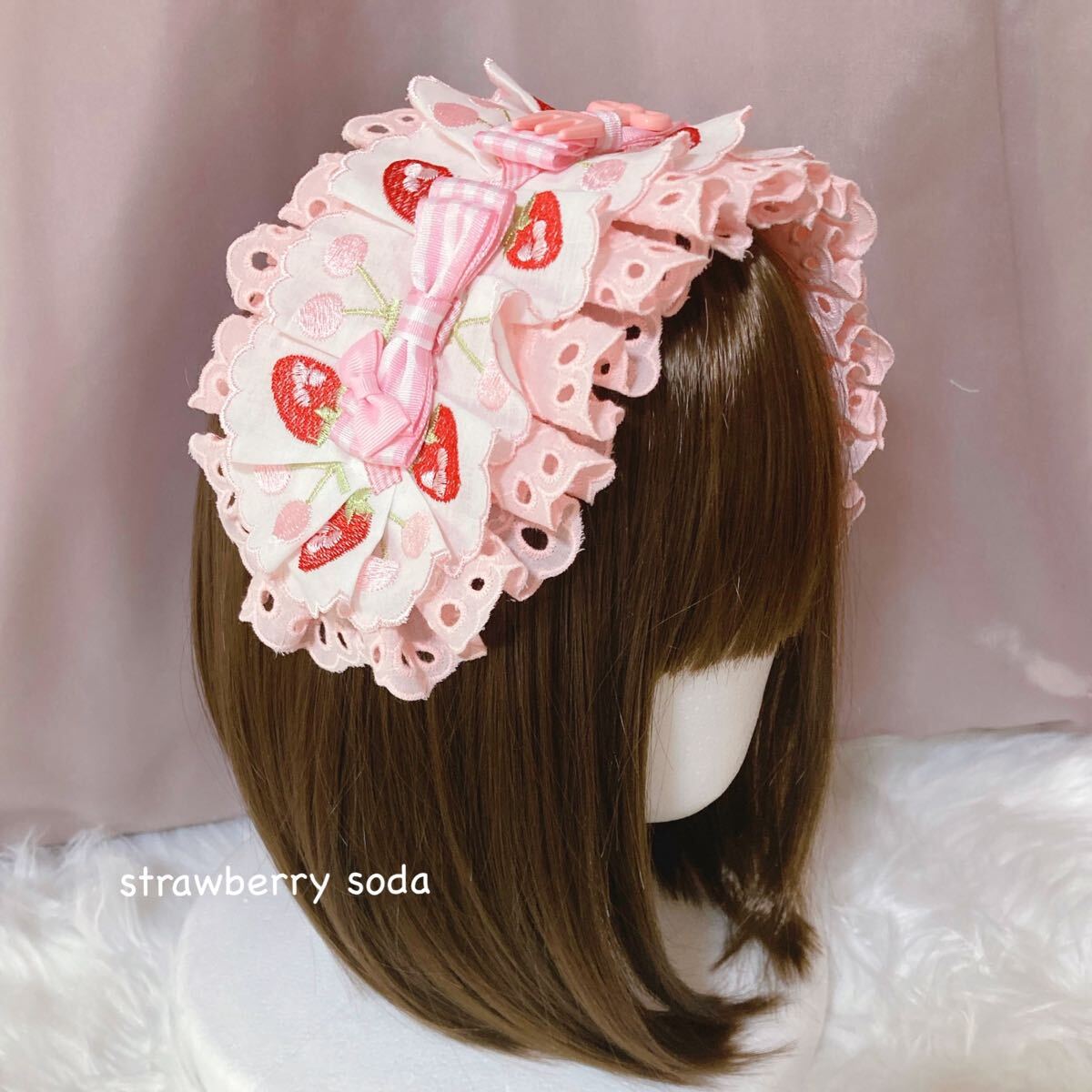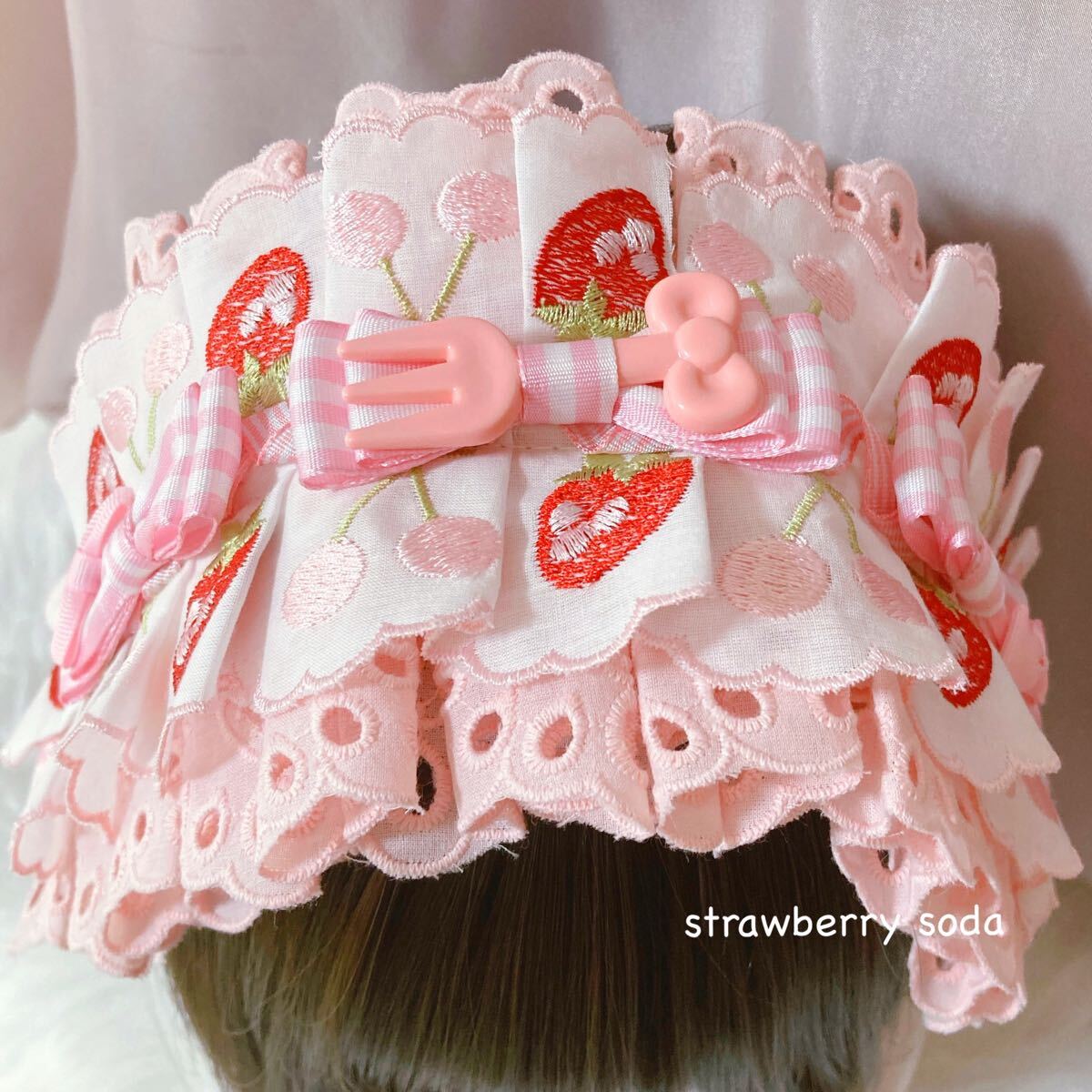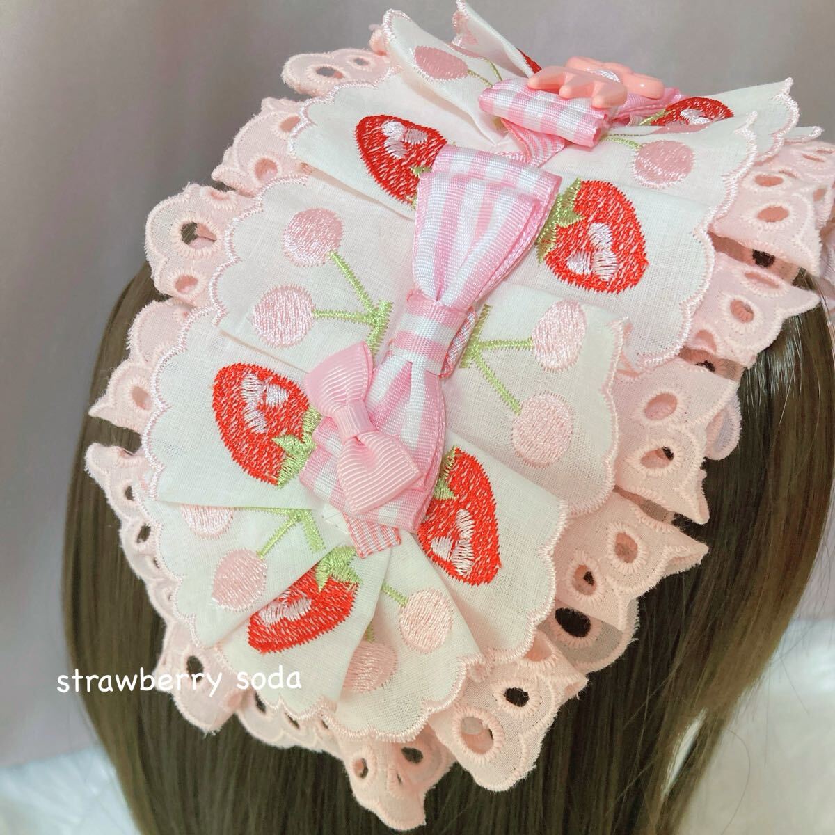 イチゴとさくらんぼの模様がラブリーなヘッドドレス