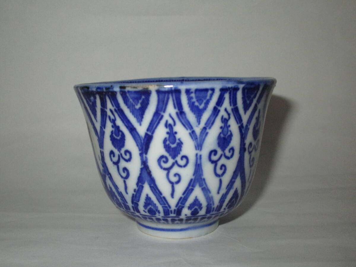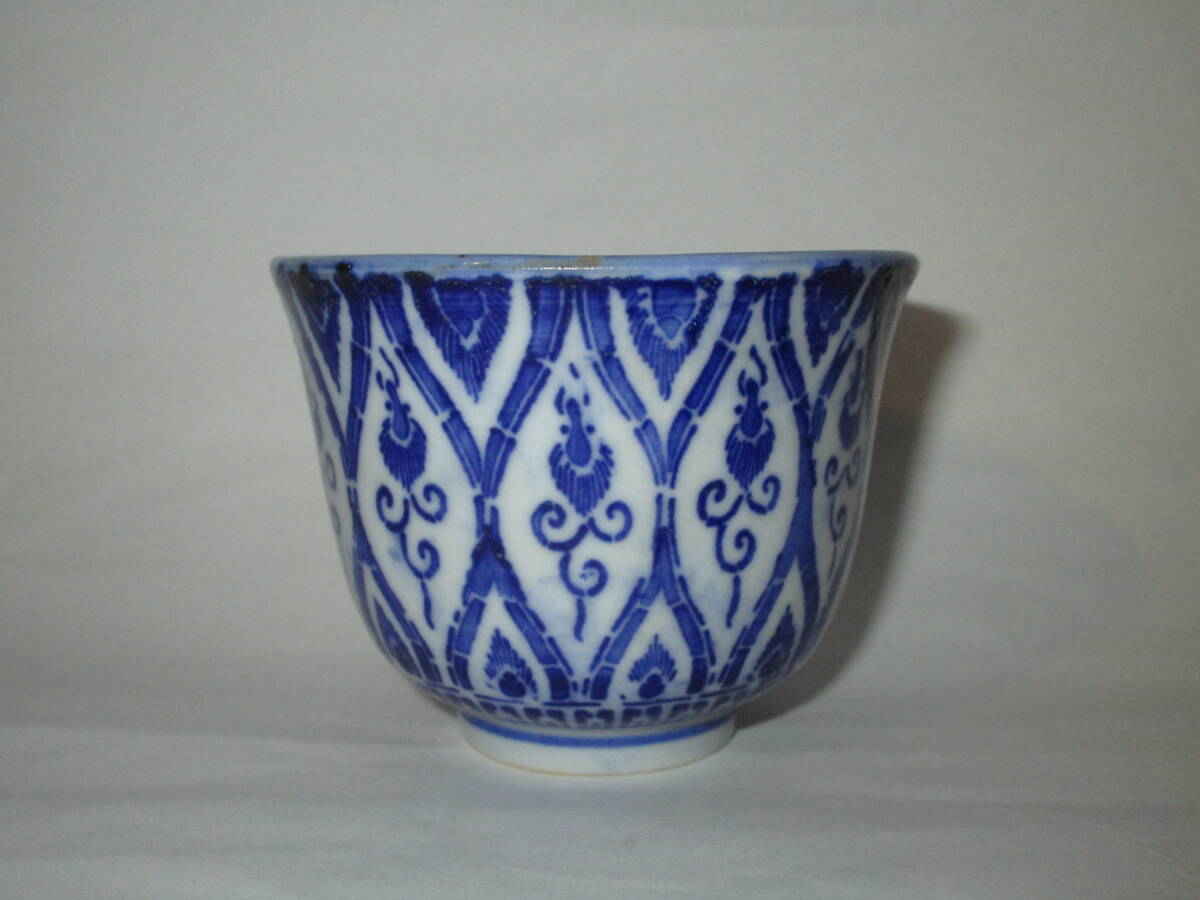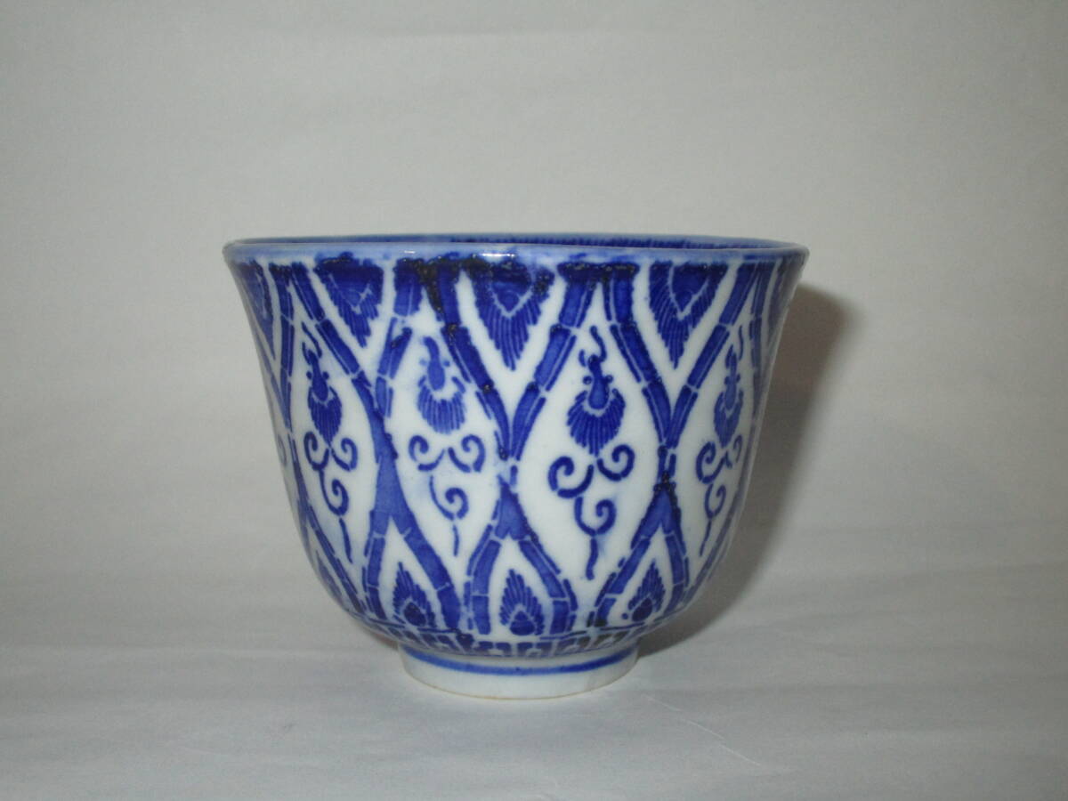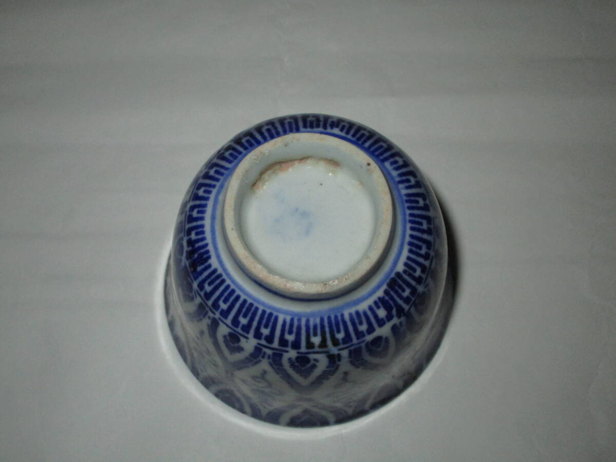 【明治時代】●図替わり● 古伊万里 古瀬戸 印判染付 蕎麦猪口 1客 (高さ5.9㎝)『雨龍に立涌く紋』●無傷●
