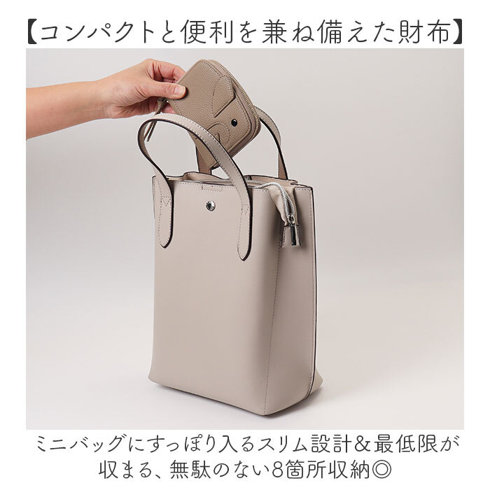 | 商品説明 | ・・【スマートに持ち運べて使い勝手抜群】 ・デイリーに使いやすく、見た目も可愛い♪LIZDAYSの「ゾウ型ミニ財布」。 ・【幸せの象徴”ゾウさん”モチーフ】 ・縁起の良い動物として知られる、ゾウ型のお財布。愛らしいデザインに心もほっこり。 ・【コンパクトと便利を兼ね備えた財布】 ・ミニバッグにすっぽり入るスリム設計&最低限が収まる、無駄のない8箇所収納◎ ・【ぐるっと開くラウンドファスナー】 ・開口部はラウンド型にオープン。中身をひと目で確認しやすく、お会計時も手間取らない♪ ・【折り札も噛まずにスマート】 ・・2つ折りにしたお札も収納可能。ファスナーが噛まずに、開閉できるつくり。 ・【仕分けしやすく自由に使える3層】 ・・3つに分かれたじゃばら式ポケット。中央には小銭、左右には複数のカードや鍵を収納。 ・【現金派もキャッシュレス派も満足】 ・・3層構造に加え4つのポケット付き。見た目以上に収納力があり、全てワンアクションでOK。 ・【ICカード対応の背面ポケット】 ・背面にもポケットを1つ配置。ICカードなど、使用頻度の高いカードをIN。 ・【スキミング防止機能を搭載】 ・外側全体に施したスキミング防止フィルムが、電磁波を遮断!カード情報や個人情報を保護。 ・【柔らかなシボ感のある合皮素材】 ・上品なシボが、手にしっかり馴染む◎本革のようなお手入れ不要で、気軽に使えるのが嬉しい♪ ・【人と被らずギフトにも最適】 ・落ち着いた風合いの素材に、個性の光るゾウ型。遊び心のあるデザインで贈り物にも♪ ・【ポケット仕様】 ・内側:フリーポケット(左右)×2、小銭入れ(中央)×1、カードポケット×4 ・背面:カードポケット×1 |