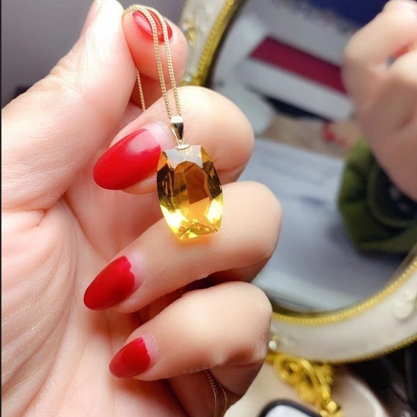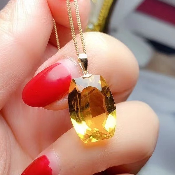 18K、AU750、鑑別付き、バチカン部分18K、18Kゴールド天然シトリンペンダント、10x14mm