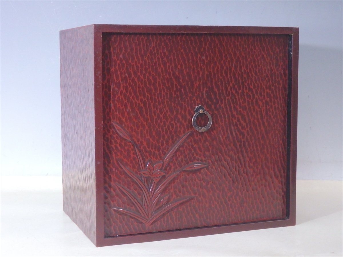 ★煎茶道具【鎌倉彫 器局 紙箱入り】木製漆器 サイズ:37.3×27.4×高さ35.8cm 中国茶器 茶の湯の棚