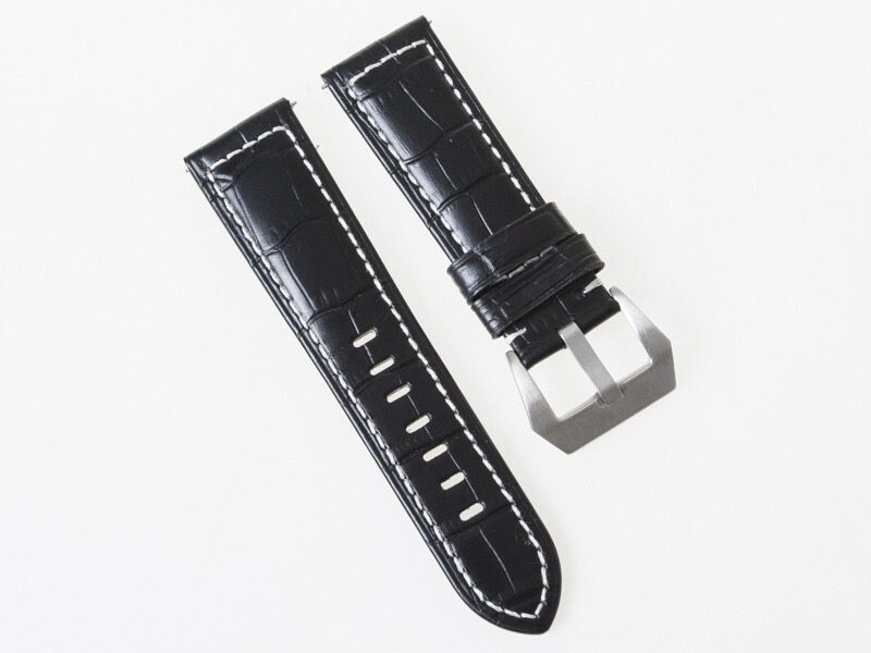 汎用タイプ、腕時計26MM用のワニ革風仕上げの本革バンドストラップです。