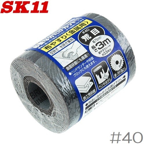 SK11 サンディングロール 3m 金属用 #40 紙ヤスリ やすり 鑢