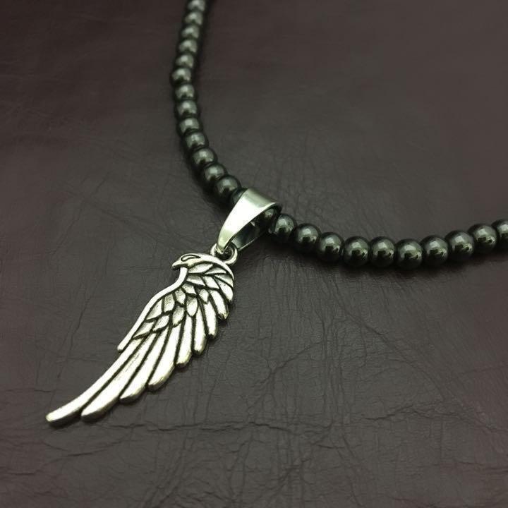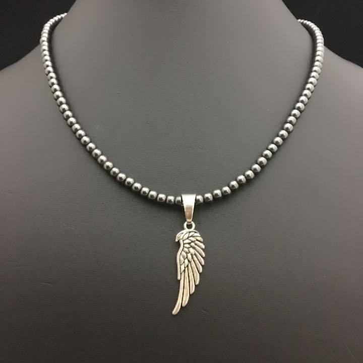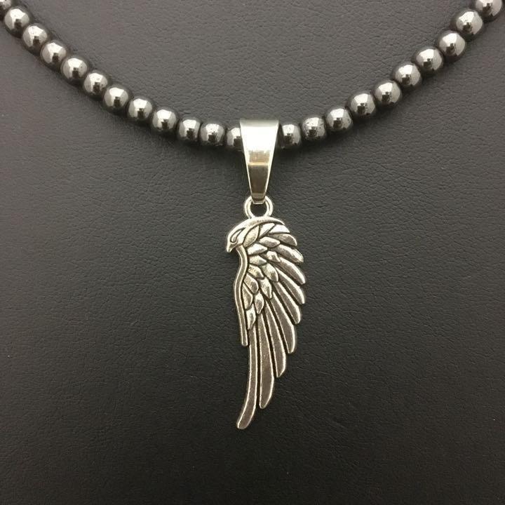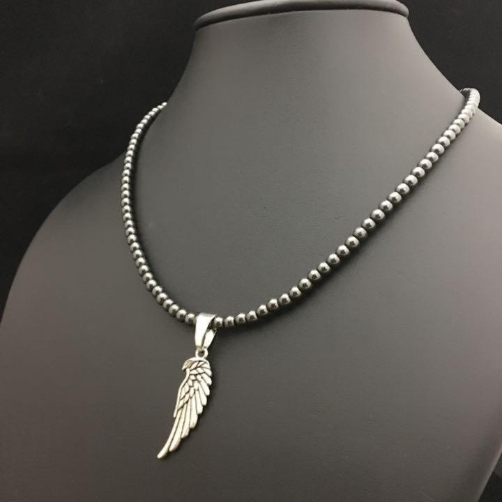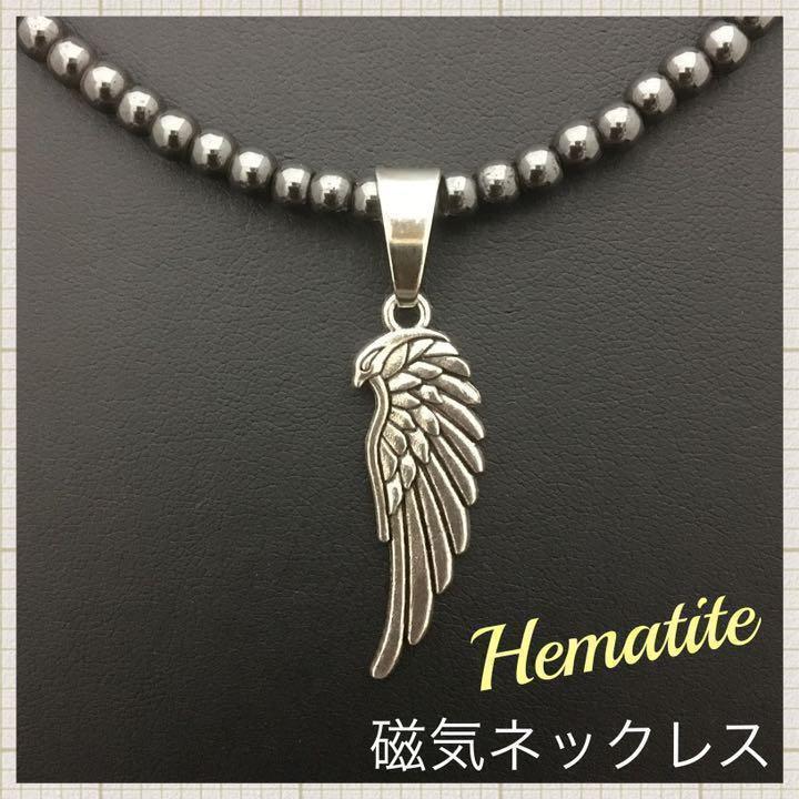 ヘマタイト 磁気ネックレス ウイング フェザー 銀古美 シルバー アンティーク風 パワーストーン 肩こり 健康