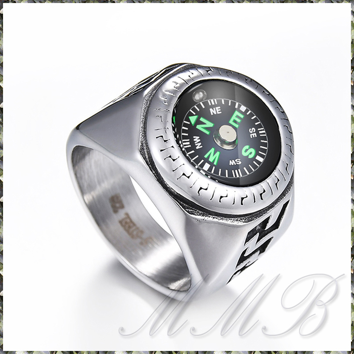 316L Stainless Steel Cool Outdoor Sports Compass Ring オイル式コンパス(方位磁石) アウトドア リング です。