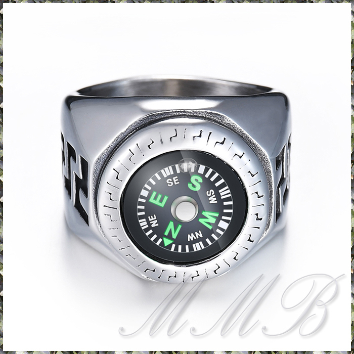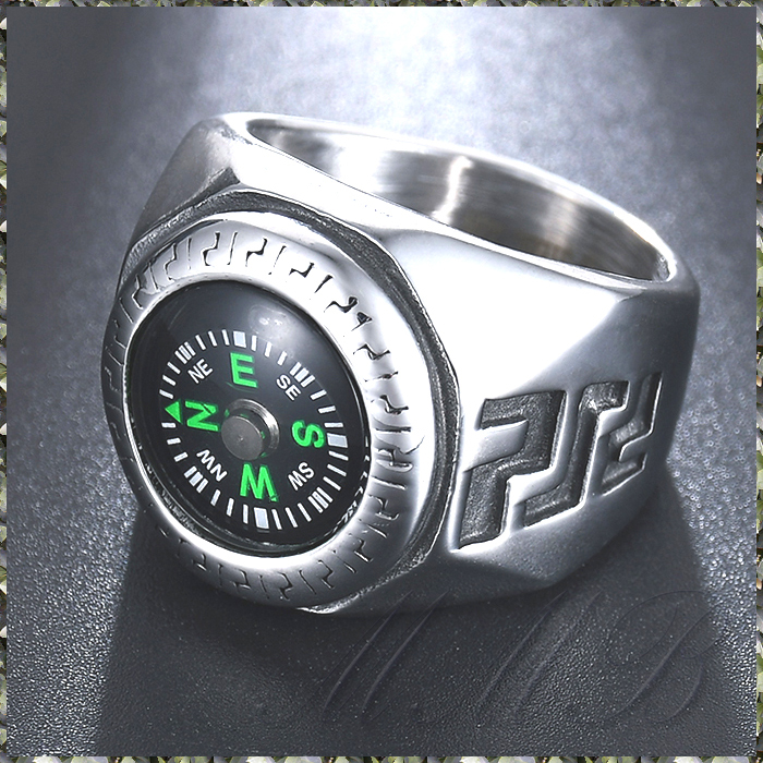 [RING] 316L Stainless Steel Cool Outdoor Sports Compass Ring オイル式コンパス(方位磁石) アウトドア リング 30号