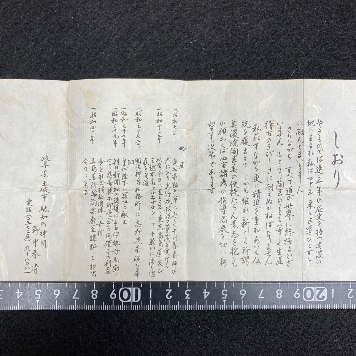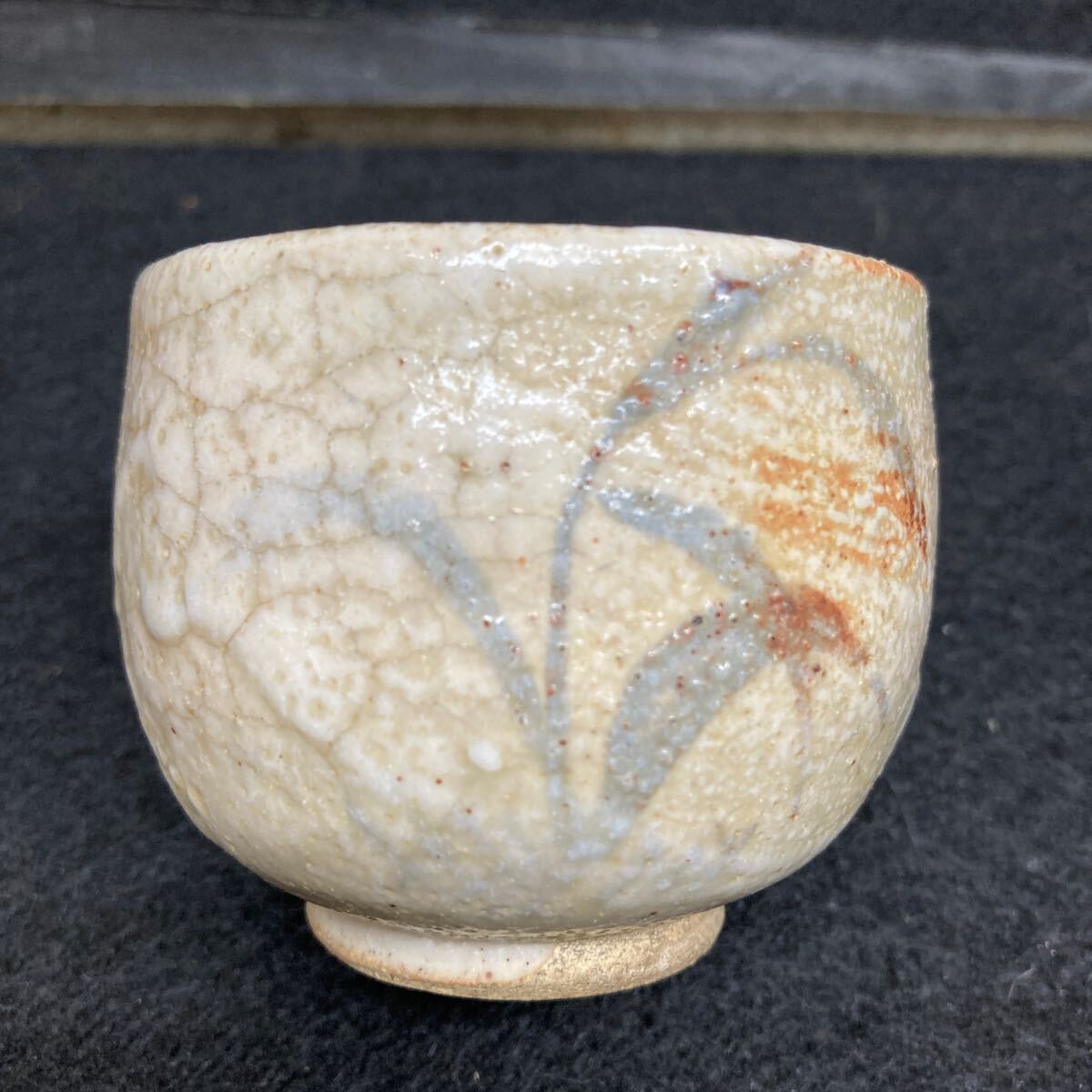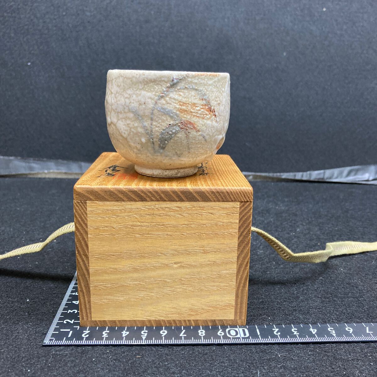 美濃焼き 野中春清造(物故作家) 絵志野 ぐい呑み 共箱、略歴付き アンテーク