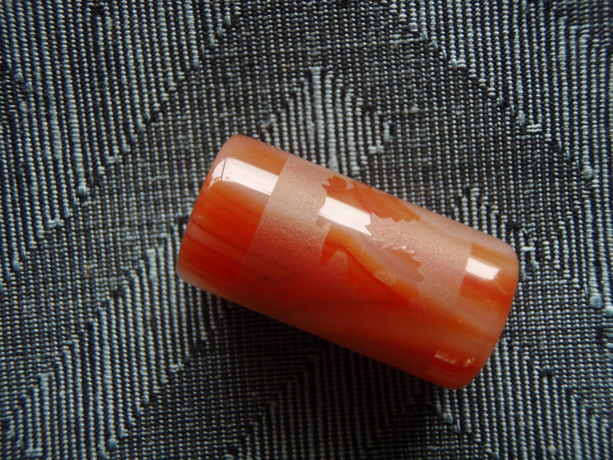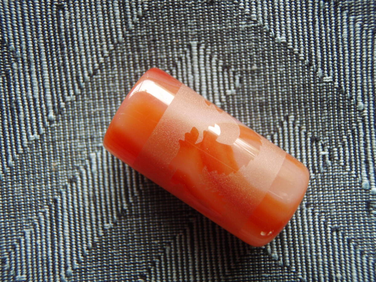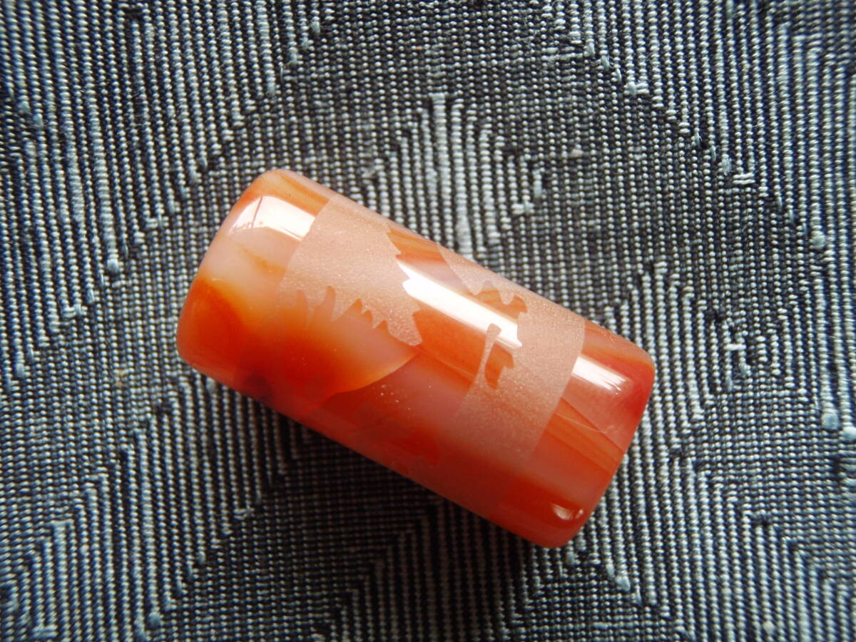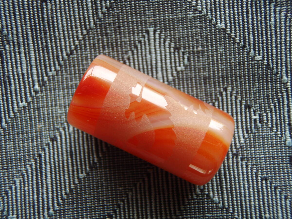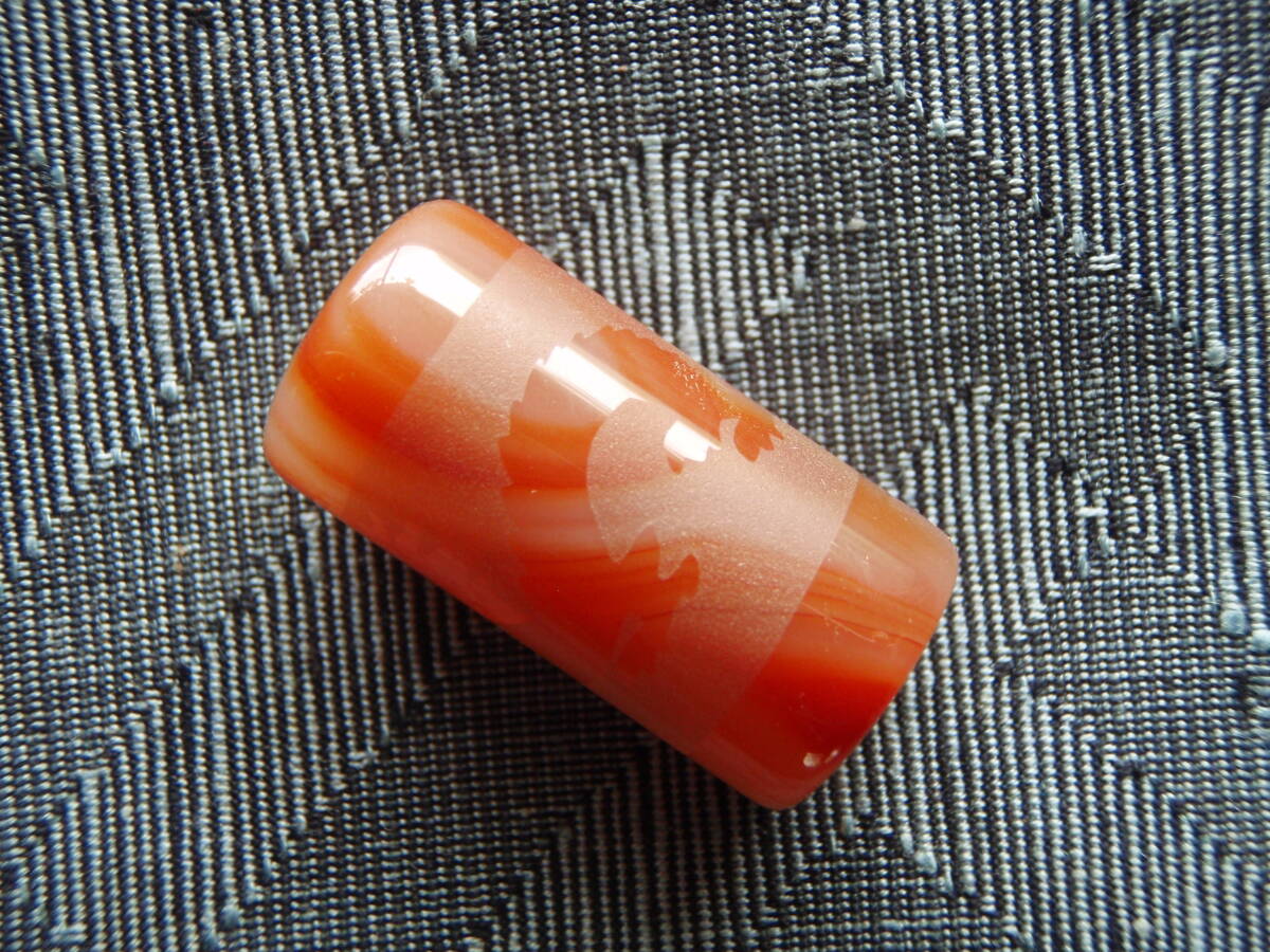 天然極品西蔵至純朱紅瑪瑙浮彫天珠 「龍」