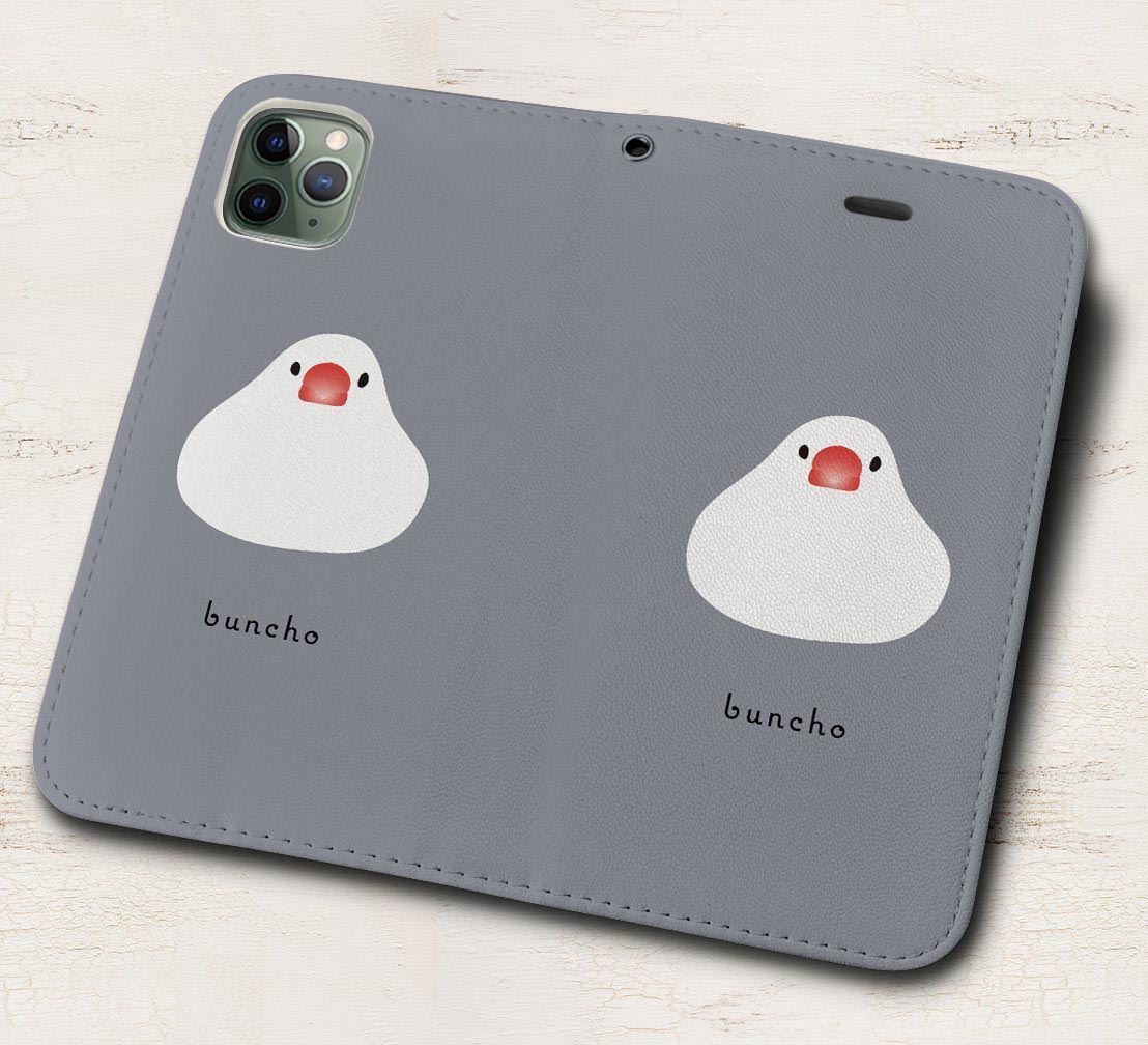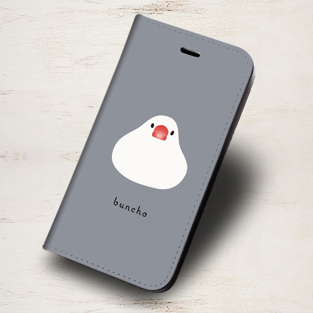 iPhone16 他 手帳型ケース 白文鳥 お餅ちゃん グレー 柄 iPhoneSE iPhone14 iPhone15 iPhone16e 他 iPhone 各機種対応