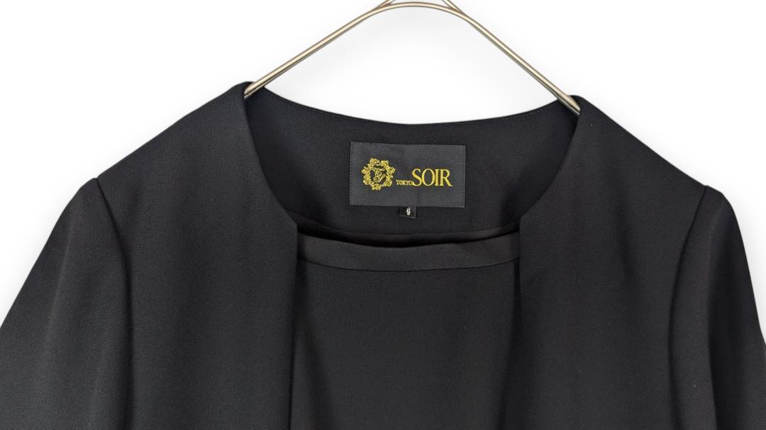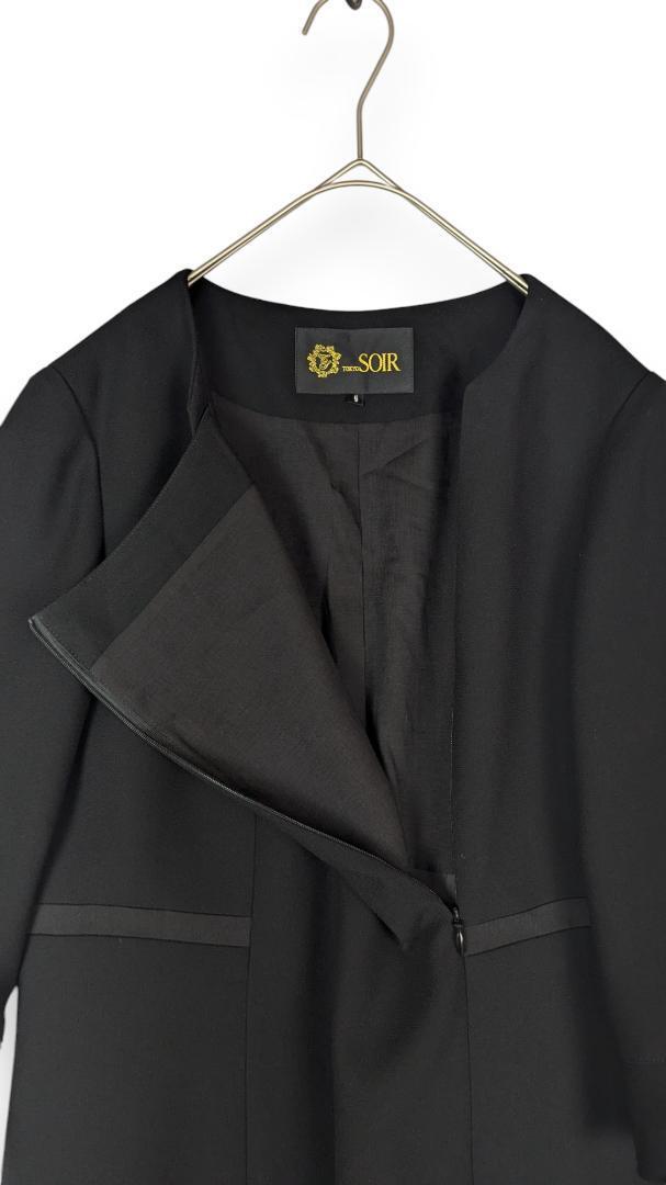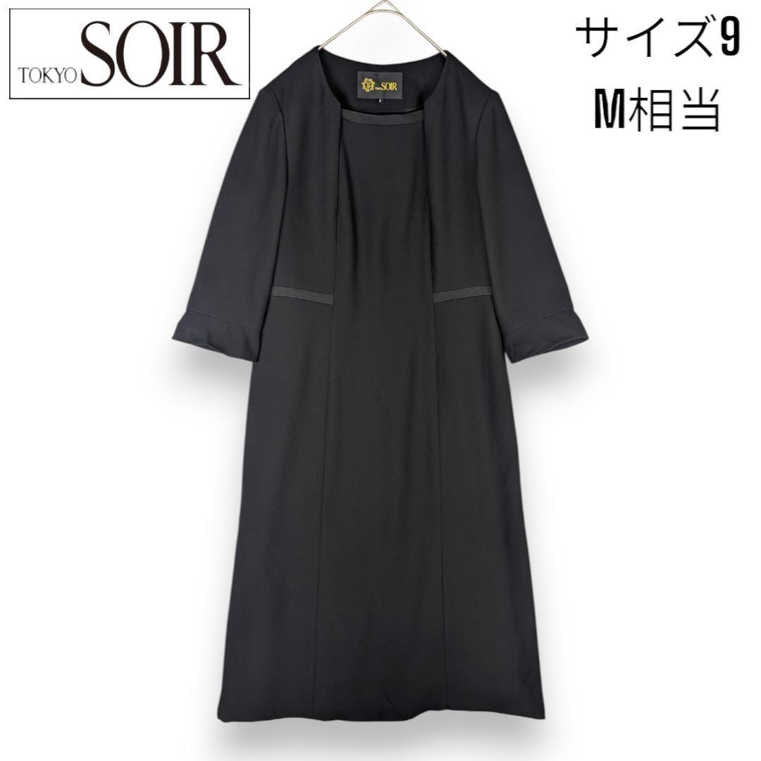 【美品】東京ソワール TOKYO SOIR ブラック フォーマル ワンピース ドレス 冠婚葬祭 礼服 喪服 黒 フロントジップ サイズ9 レディース