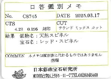 付属品 | ソーティング(日本彩珠宝石研究所) ※販売価格が121,000円以上の商品については宝石鑑別書を付けて納品致します。但し、作品の材質や構造の理由で一部商品にはお付けできませんので、予めご了承ください |