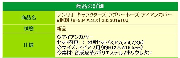 商品名 | サンリオ キャラクターズ ラブリーポーズ アイアンカバー 8個組 (6-9.P.A.S.X) 3335018100 |