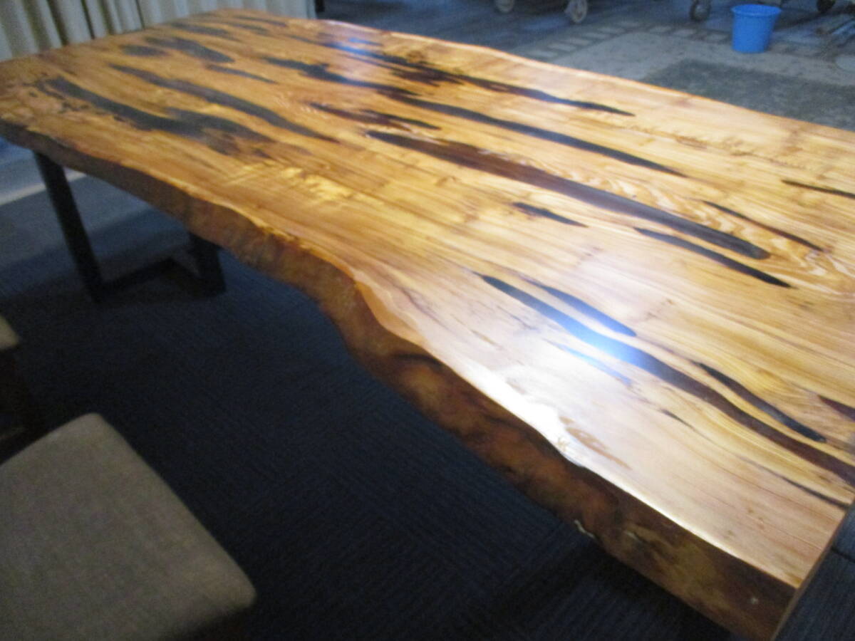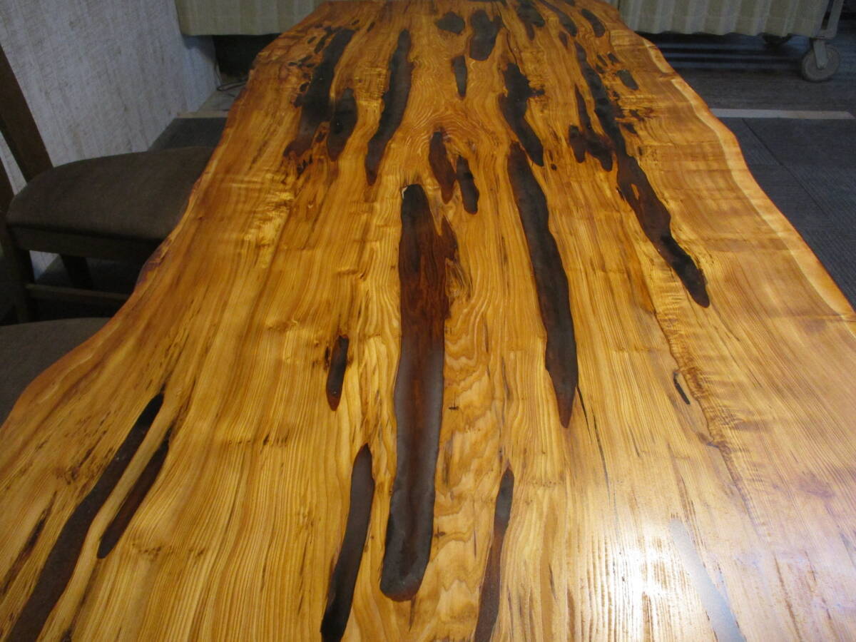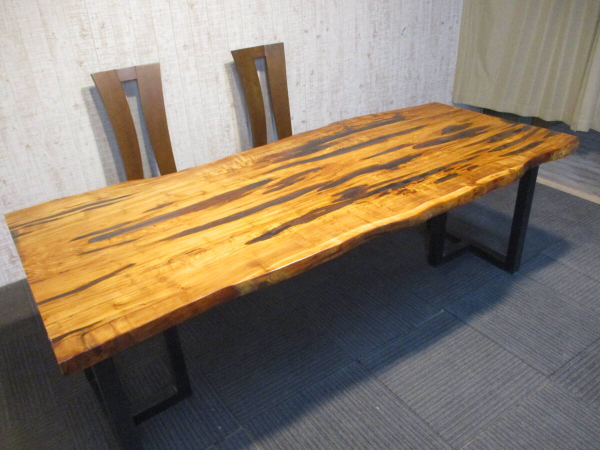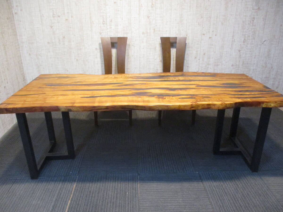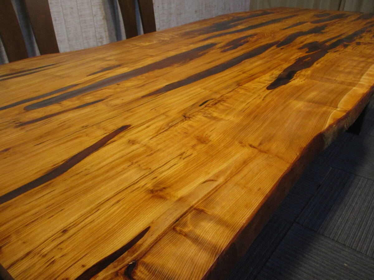屋久杉の一枚板無垢のテーブルです。屋久杉の表面を焼きだしにして、その焼き跡にレジンを流し込み磨き上げたものです。立派なテーブルの完成です。奥行きも厚みもあります。両面きれいに仕上げてお送りします。