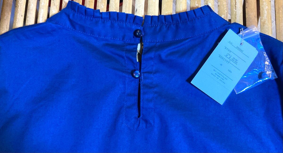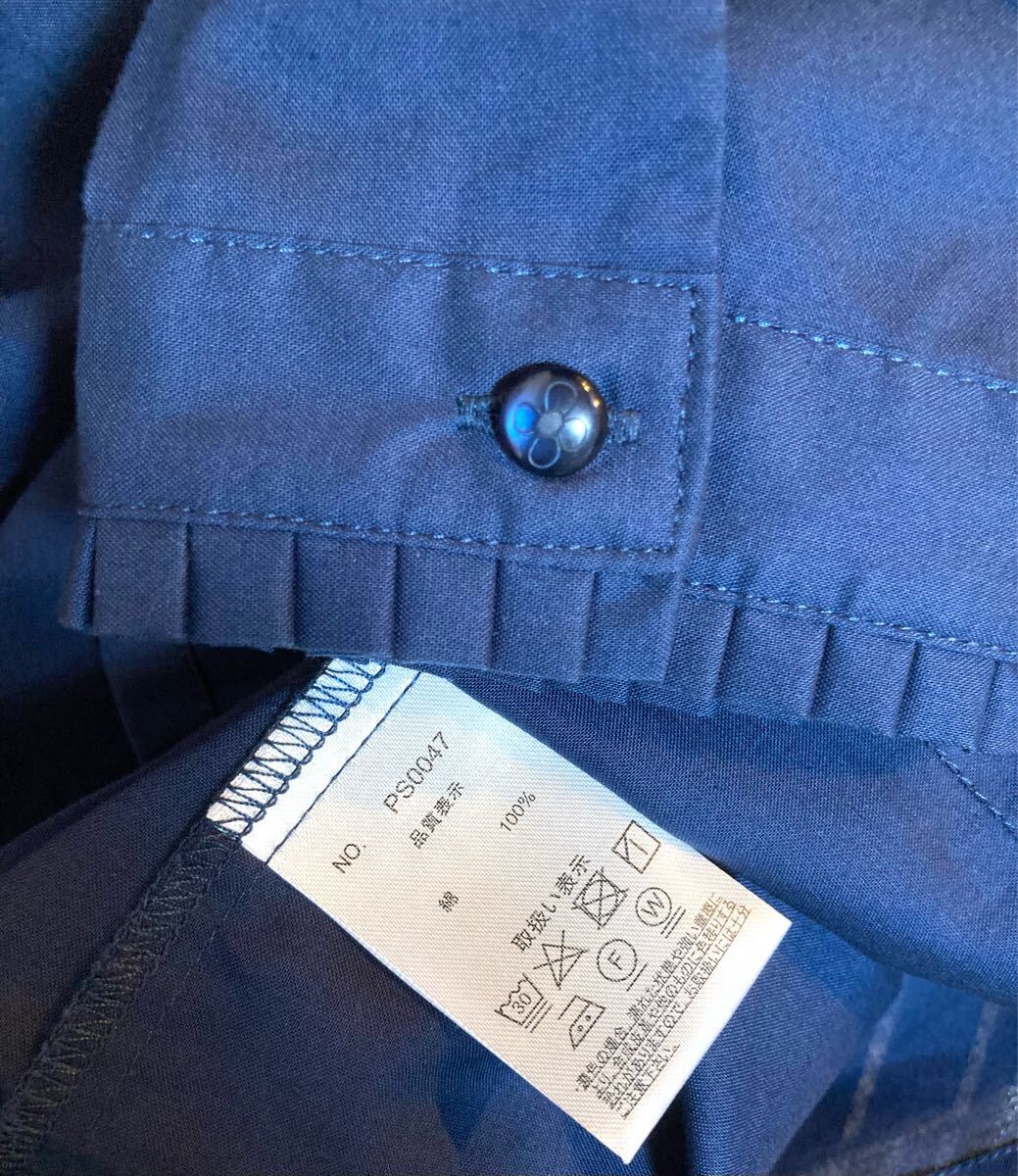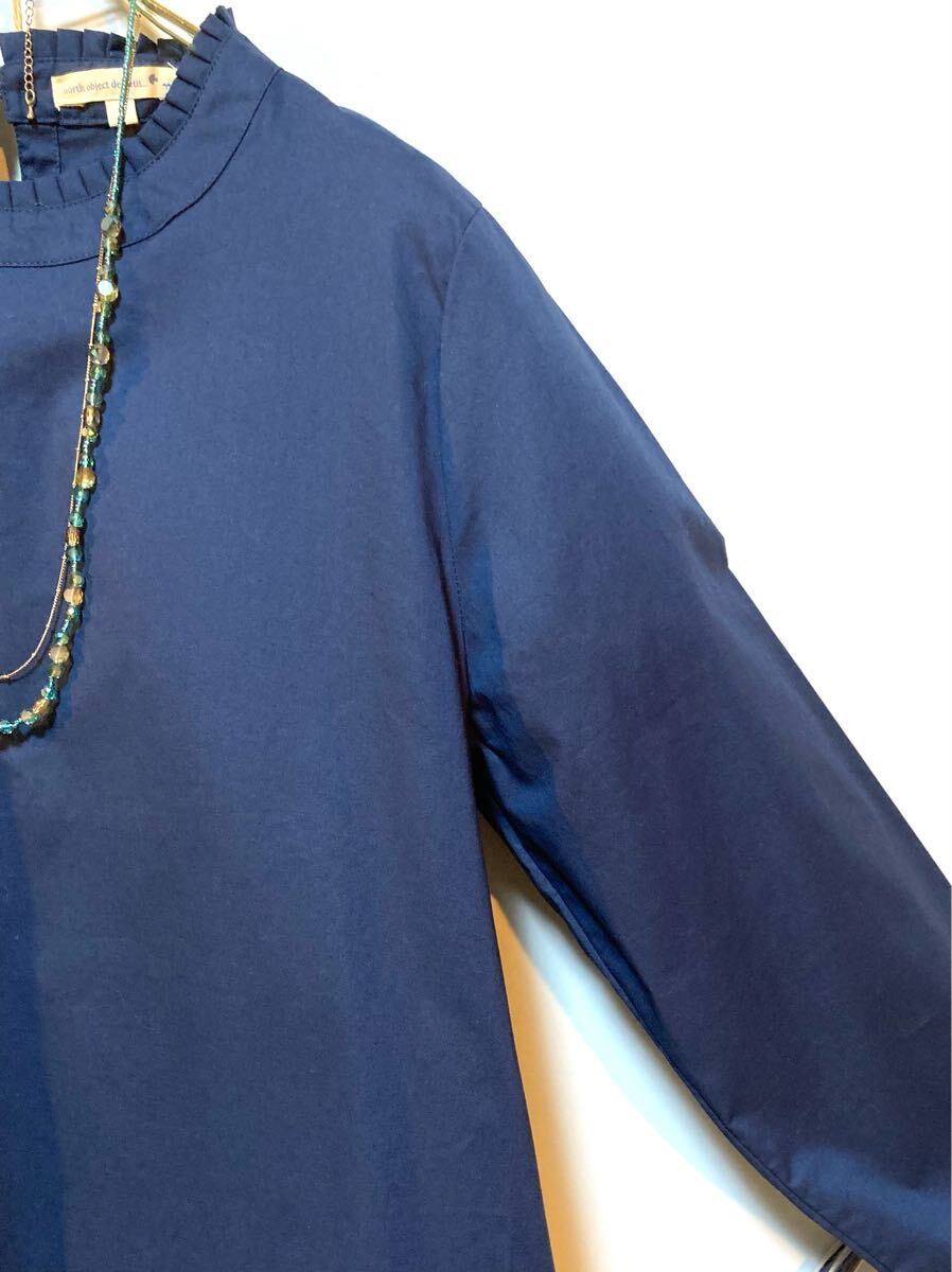 送料無料♪新品タグ付!  C100%   *ネイビー無地 ミニフリルブラウス 長袖* Lサイズ    ユトリコ  CHA-CA.