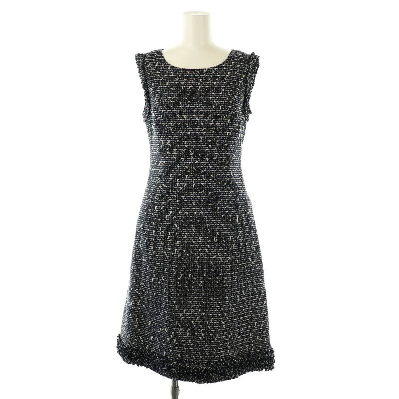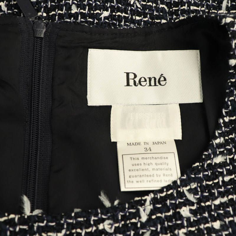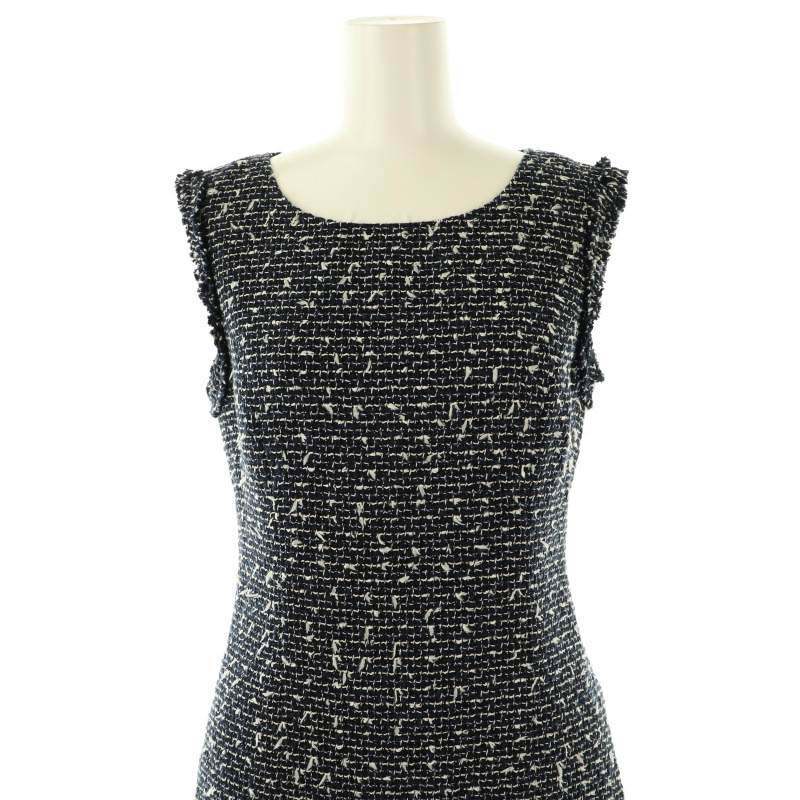 ルネ Rene × TISSUE 22年 ツイードノースリーブワンピース ひざ丈 34 ネイビー ホワイト /DF ■OS レディース