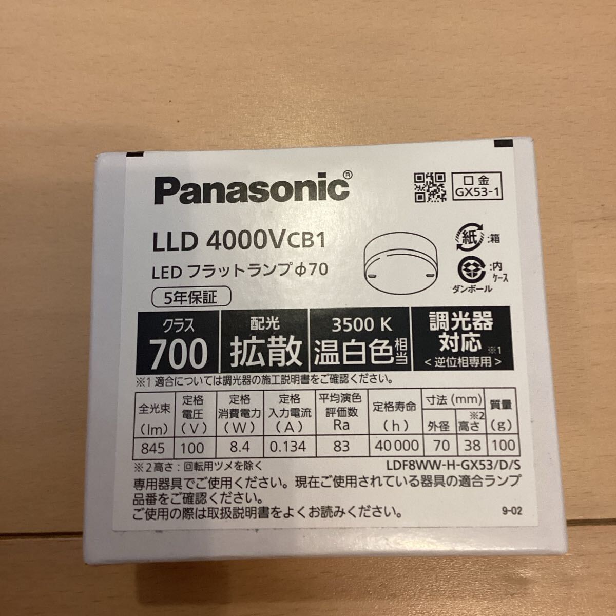 3500Kの温白色光を放つ、GX53-1口金のLEDフラットランプ。