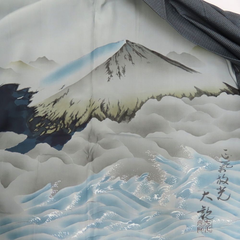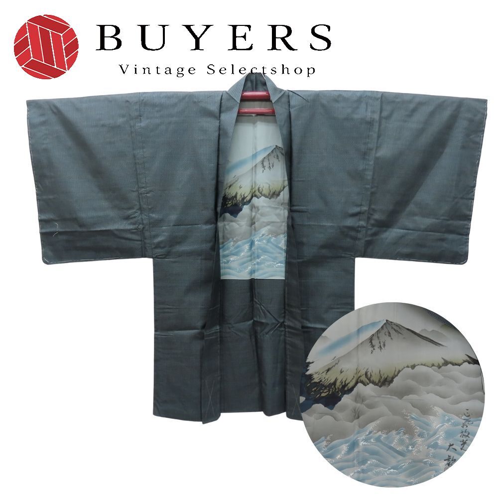 中古 羽織 正絹 グレー ブルー 羽裏 しつけ糸あり 和装 呉服 和服 きもの メンズ 男性