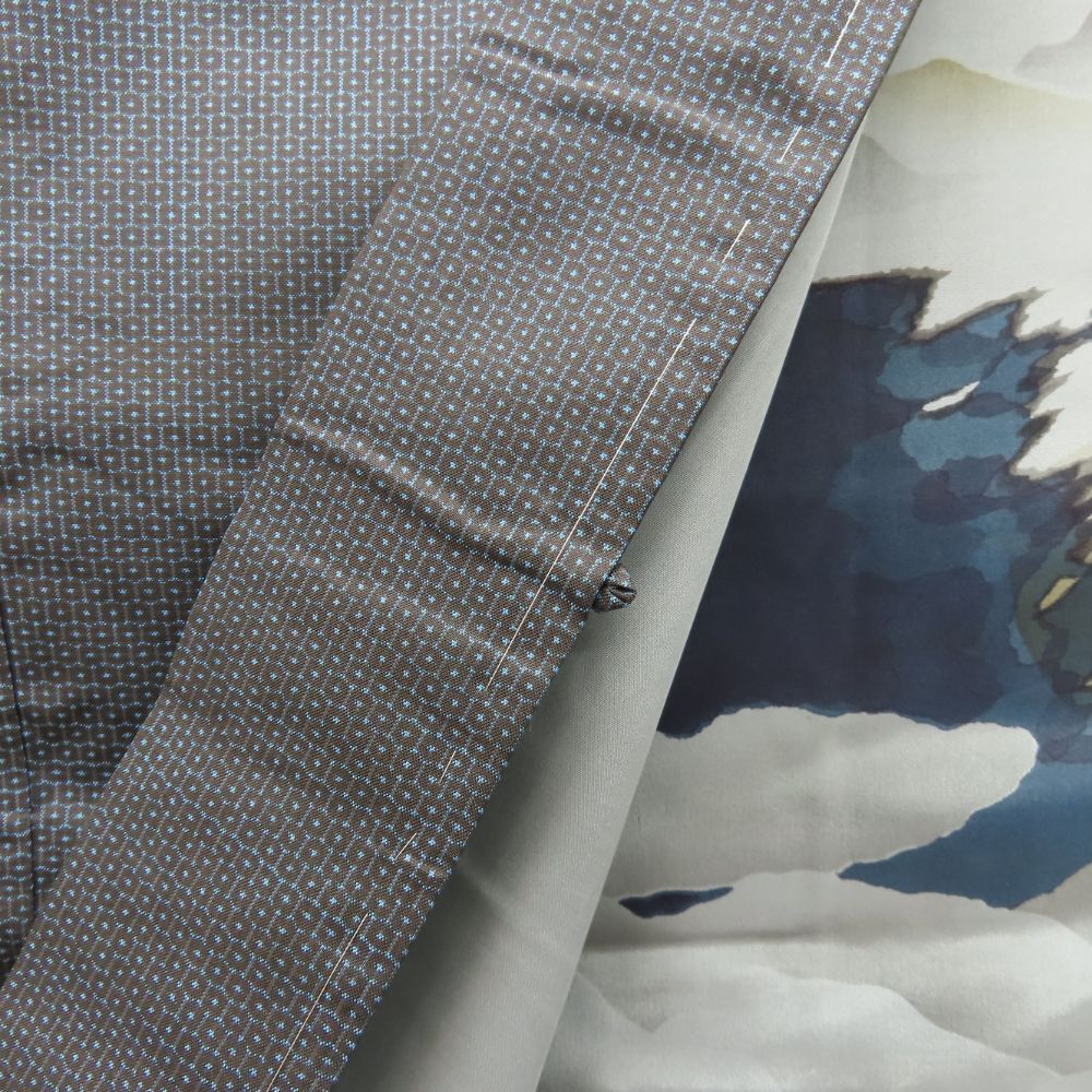 品名 【中古】 羽織 正絹 グレー ブルー 羽裏 しつけ糸あり メンズ 男性