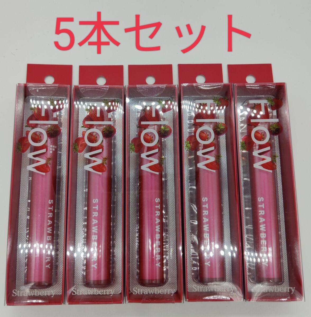 Flow フロー ライムミント フレーバー 国内 ブランド 電子タバコ ニコチン無し タール無し 禁煙 使い捨て べイプ VAPE 水蒸気 約1,600回吸引 持ち運び シーシャ ベイプ (1本, ストロベリー)