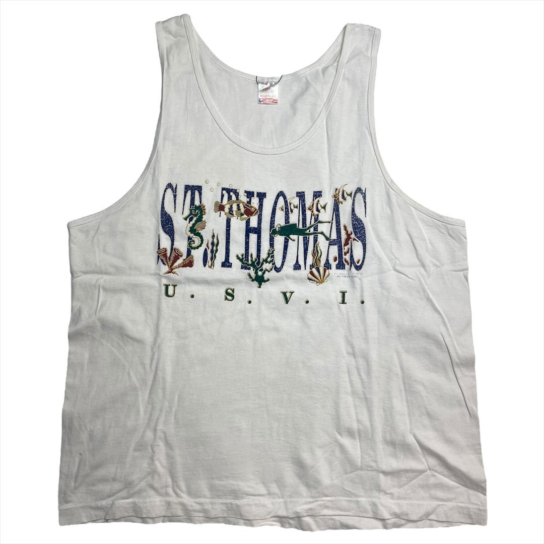 Vintage 80s-90s フルーツオブザルーム St. Thomas U.S.V.I. ロゴ タンクトップ ホワイト FRUIT OF THE LOOM 古着 メンズ XL USA製