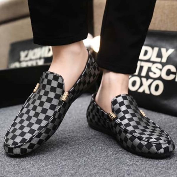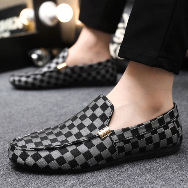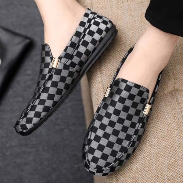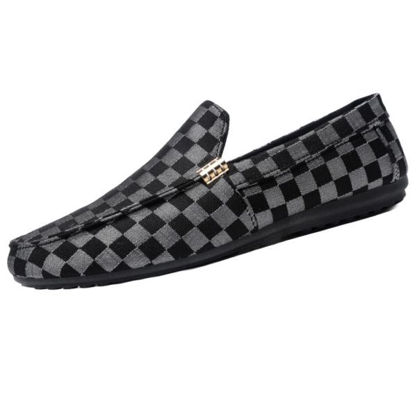 sp37【 26.5cm 】ドライビングシューズ モカシン チェック ブロック柄 メンズ 総柄 ローファー スリッポン カジュアル