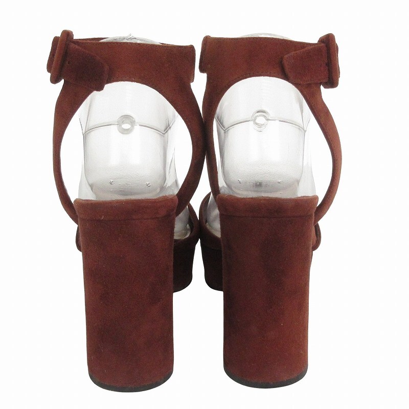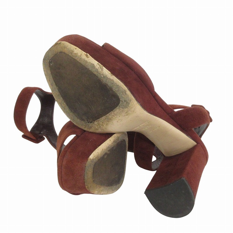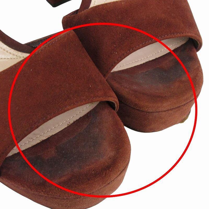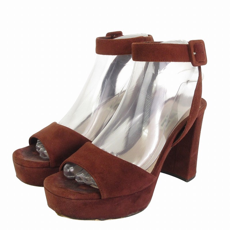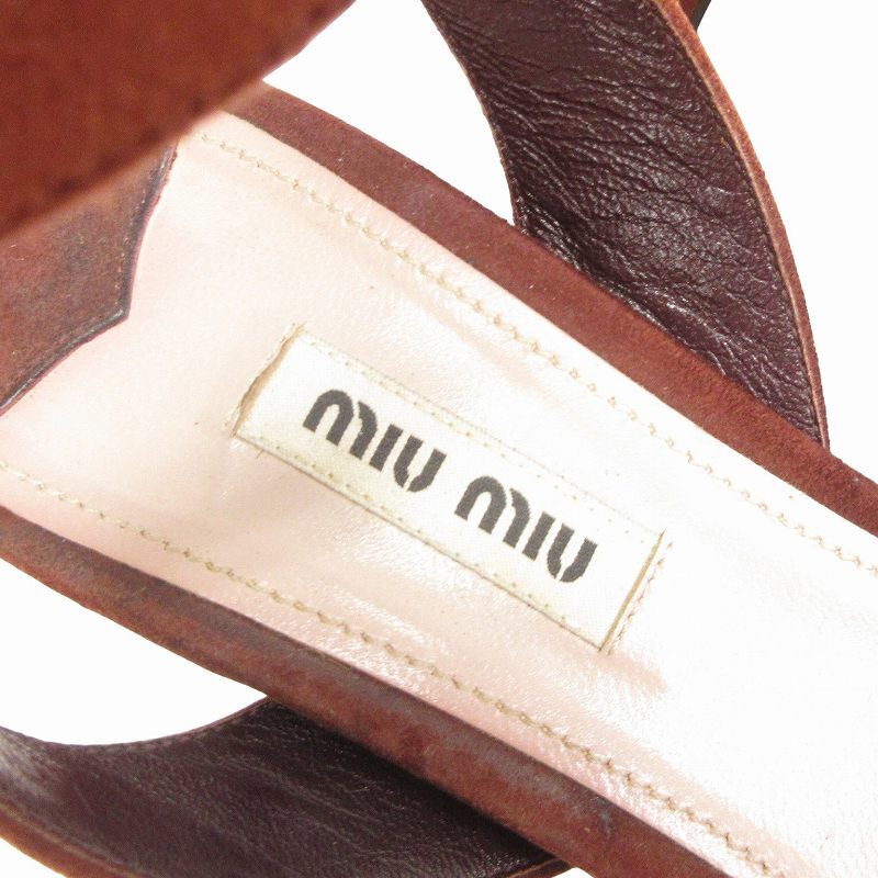 ミュウミュウ miumiu サンダル チャンキーヒール ストラップ スエード 赤茶 38.5 23cm位 靴 ☆AA★ レディース