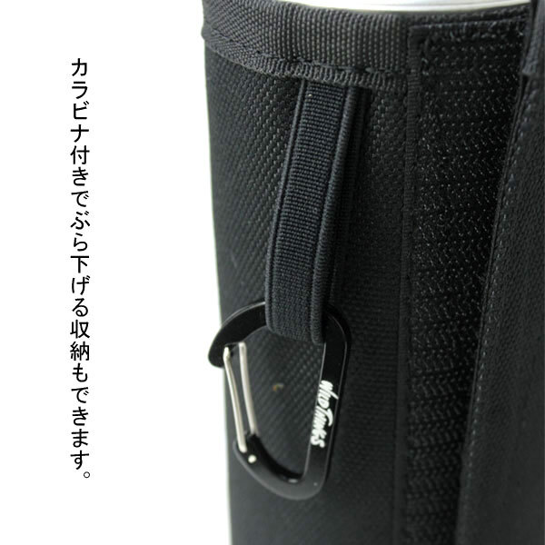 マジックテープ部分はワッペンでカスタムも可能。カラビナのループ部分にはCB缶キャップを取り付けることで紛失防止も◎