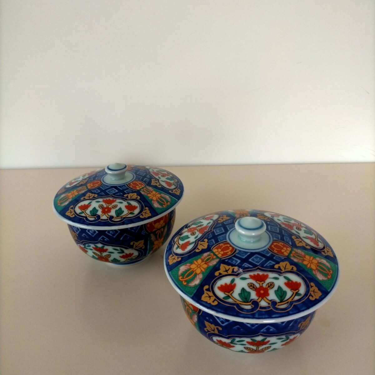 未使用保管品 有田 聖山窯 蓋付湯飲み 2客ペアで   伊万里調の豪華版です