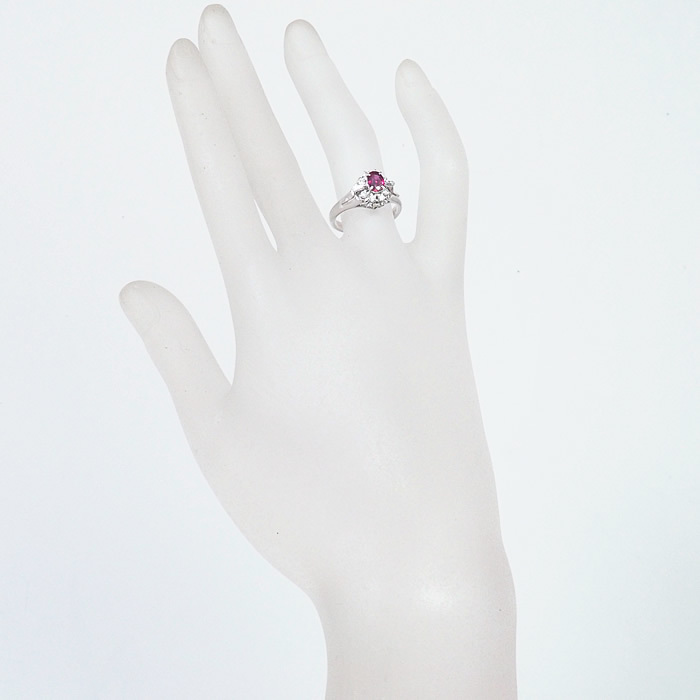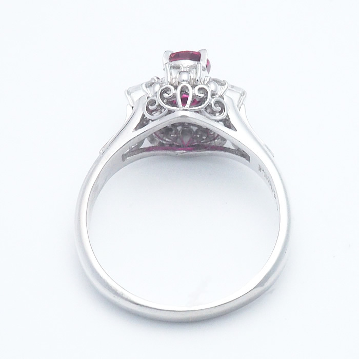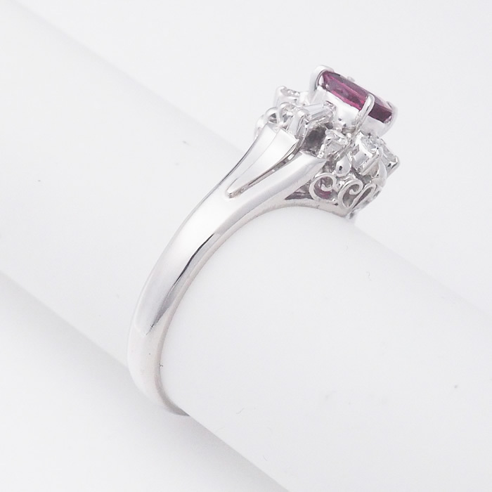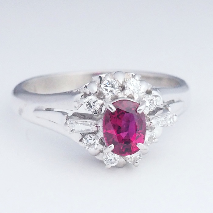 ルビーの赤い輝きとダイヤモンドの白い輝きが美しいプラチナ製のリングです。