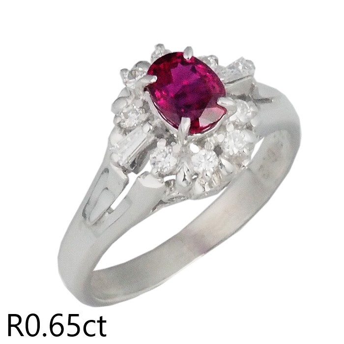 詳細:ノーブランド ルビー/0.65ct ダイヤ/0.21ct Pt900 プラチナ リング 12号 鑑別カード付き 仕上済