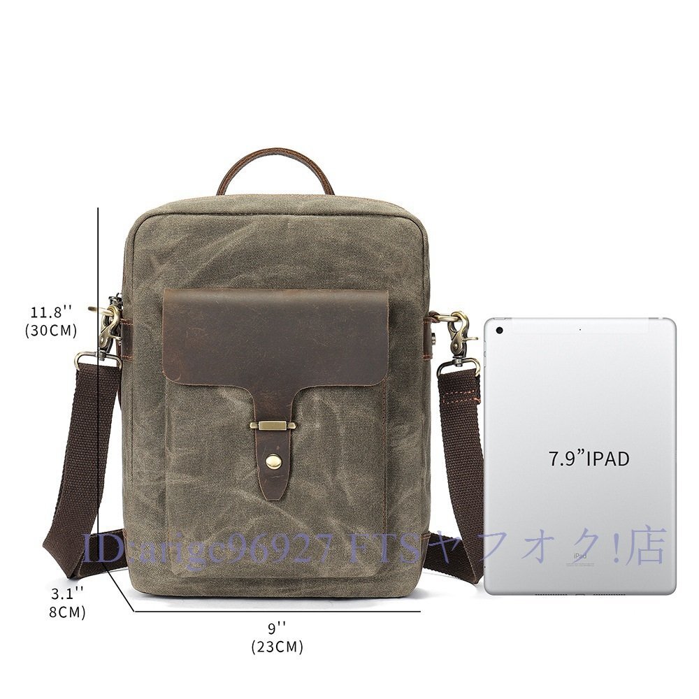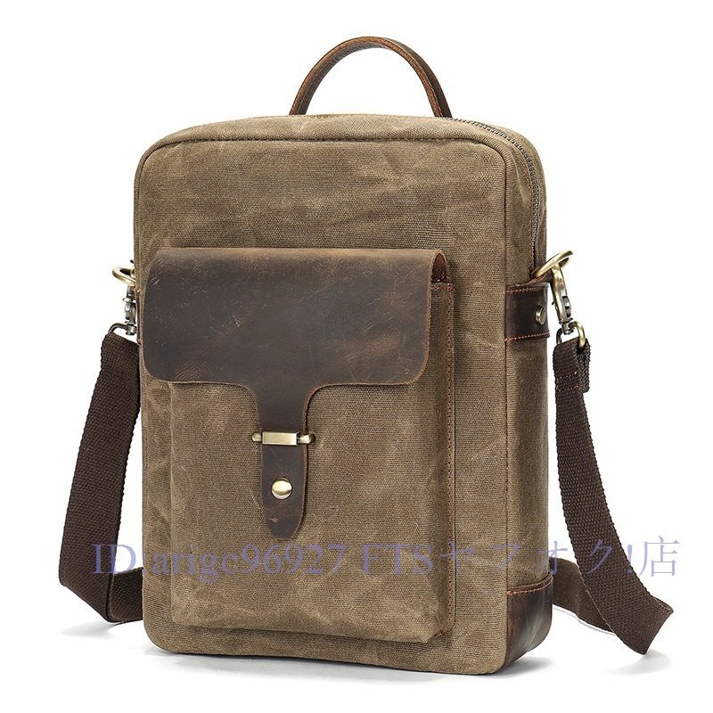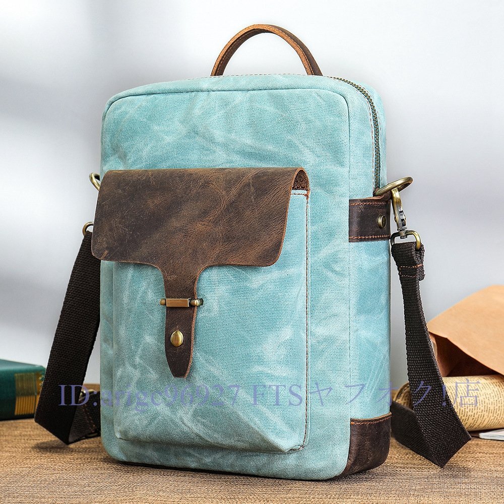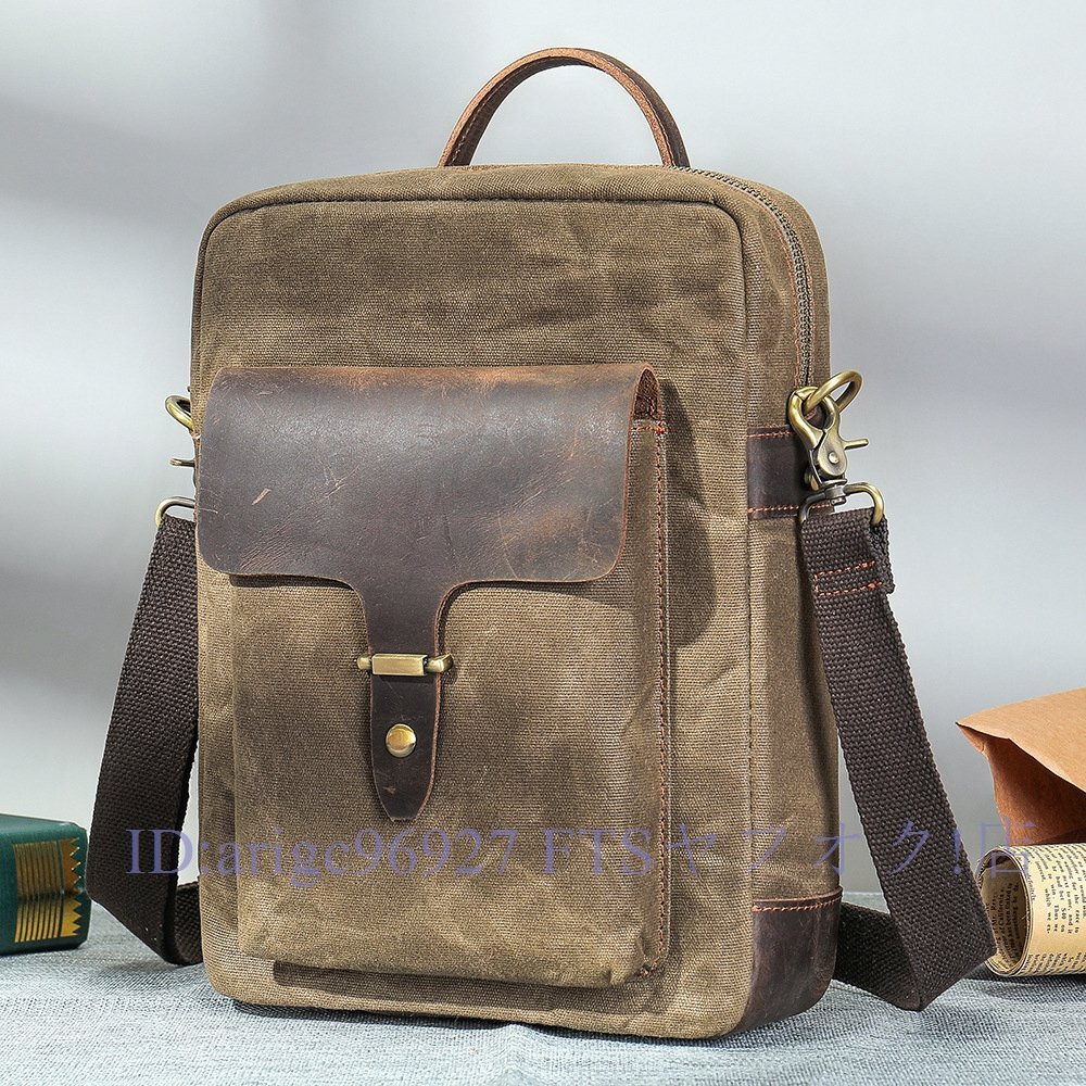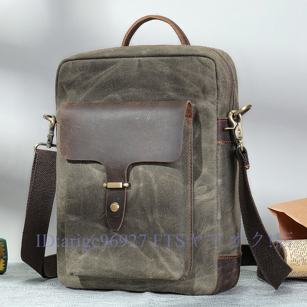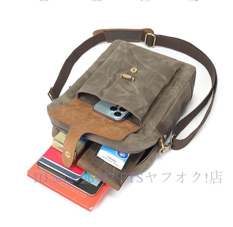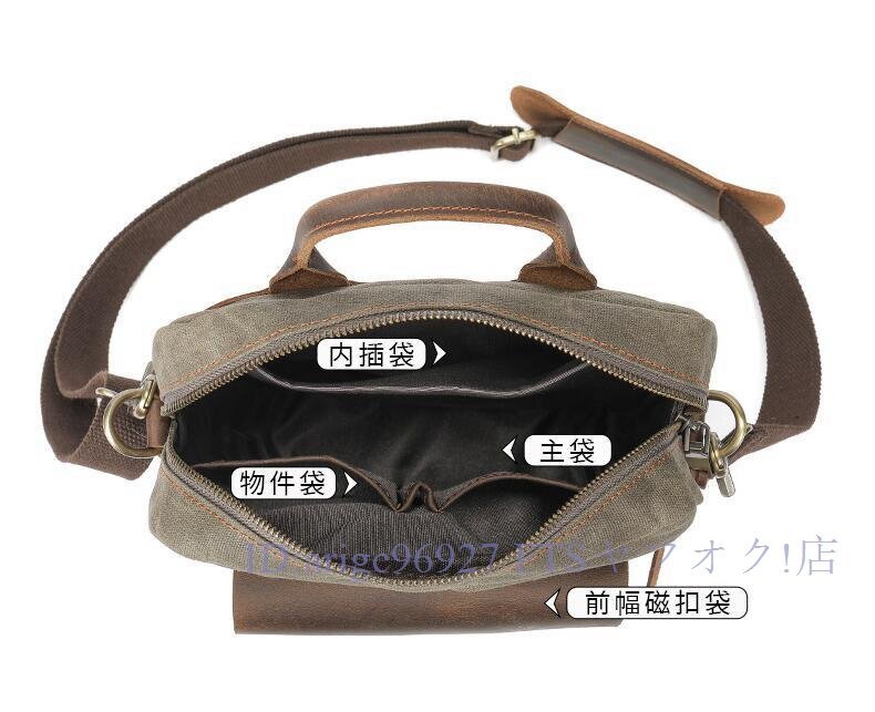 B2204☆新品メンズショルダーバッグ 帆布 牛革 本革 斜め掛け 大容量 軽量 収納 ポケット ビジネス 旅行 黒