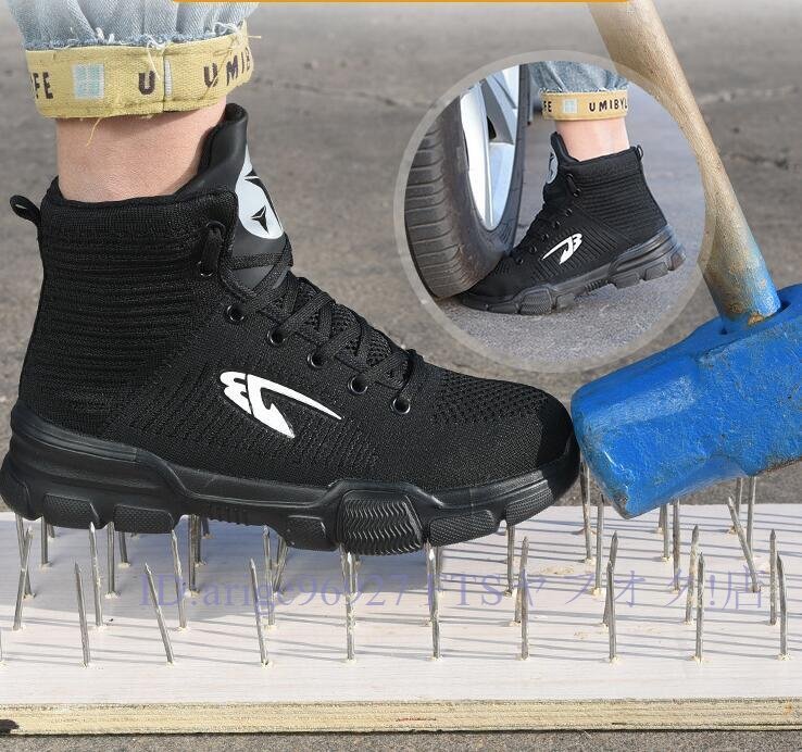 B2017☆新品作業靴 メッシュ 夏用 安全靴 メンズ レディース 踏み抜き防止 滑りにくい 通気 軽い 作業用品 スニーカー 女性サイズ対応 黒