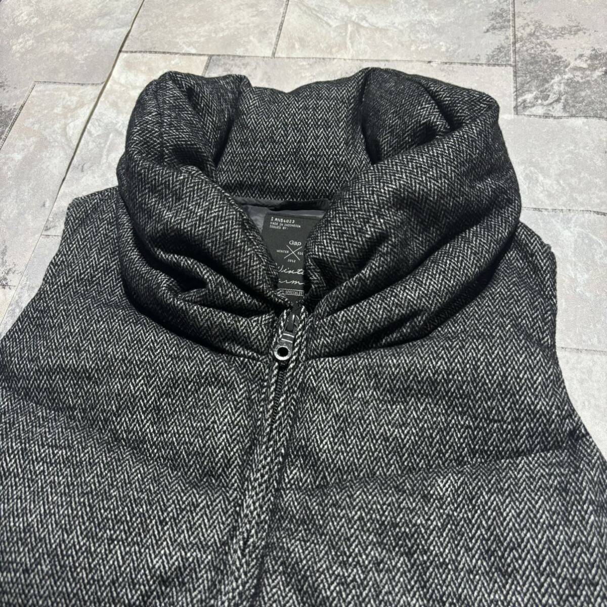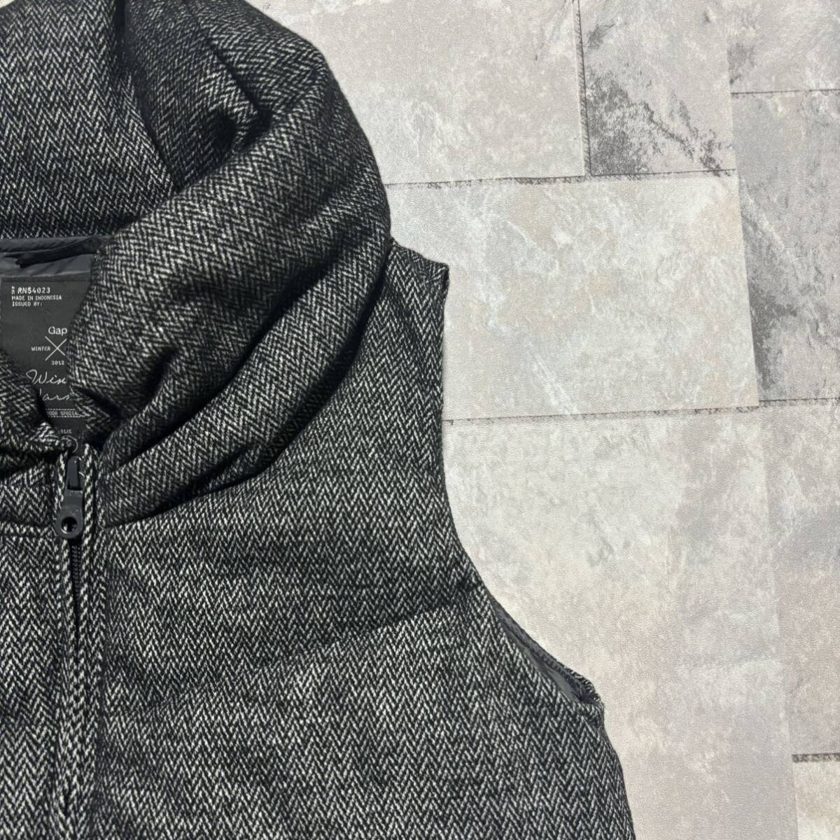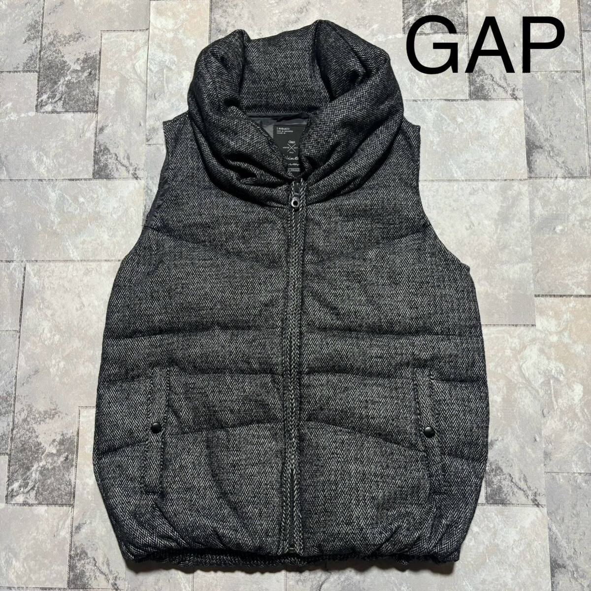 GAP ギャップ Down vest ダウンベスト ジャケット ジップアップ ボリュームネック ヘリンボーン柄 グレー レディース サイズS 玉FS1395