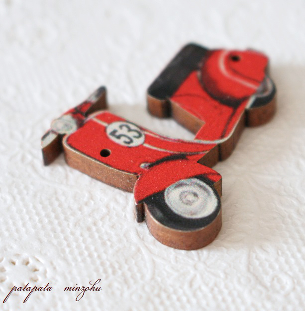 かわいい木製ボタンが入荷いたしました。赤いスクーター です。