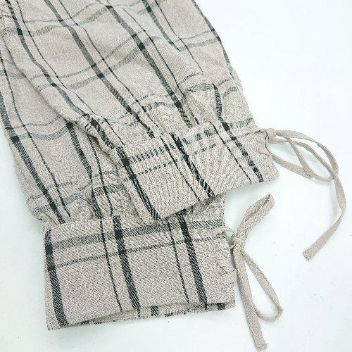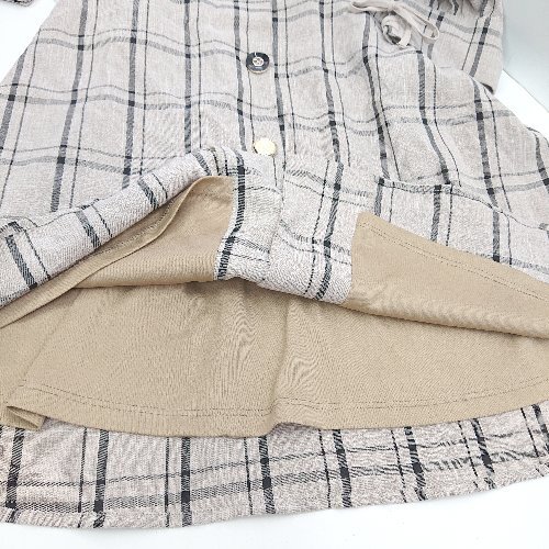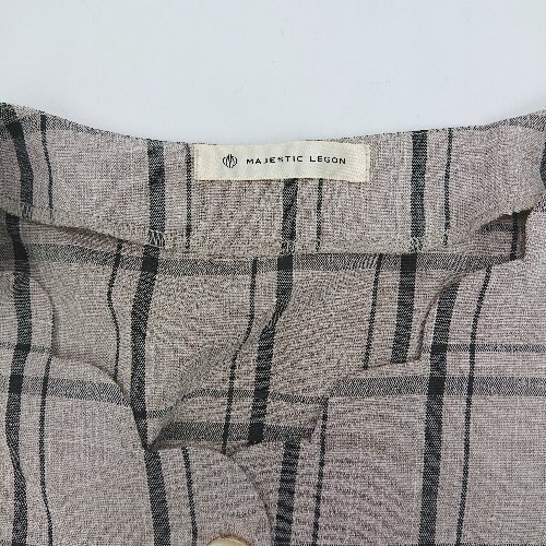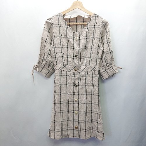 ◇ MAJESTIC LEGON チェック柄 スカラップ 七分袖 ミニ丈 ワンピース サイズM ベージュ ブラック レディース E