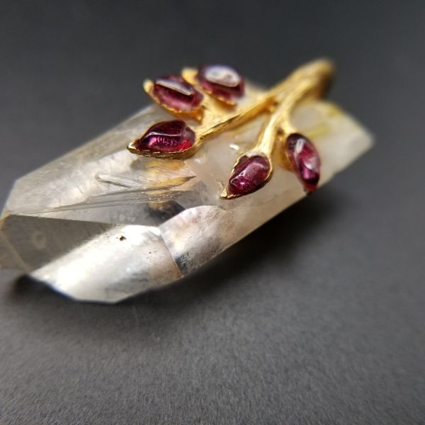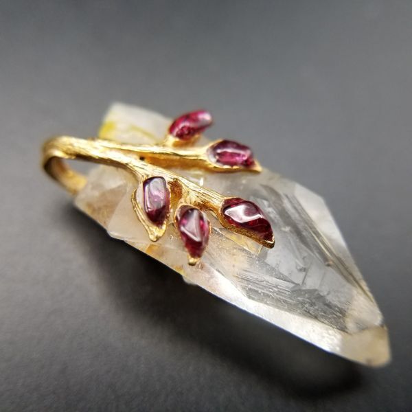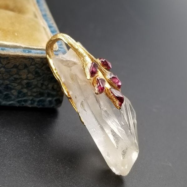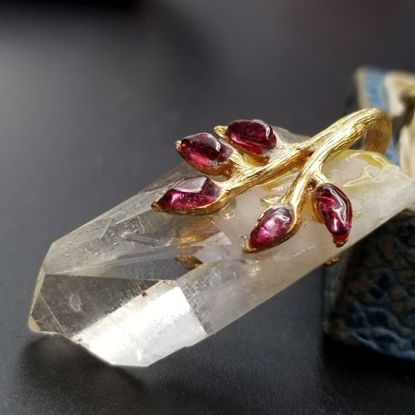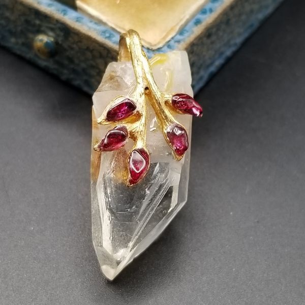 クリスタルロック 天然石 フローラル ヴィンテージ ペンダントヘッド チャーム ネックレス クラシカル コスチュームジュエリー AJE