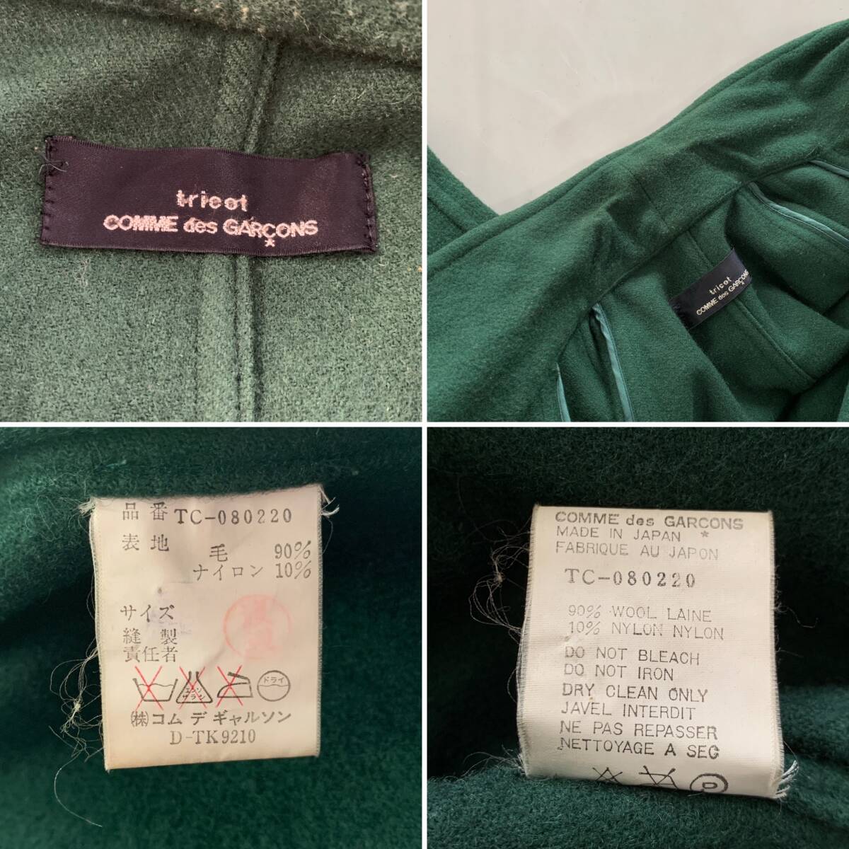 ☆80s tricot COMME des GARCONS トリココムデギャルソン TC-080220 ボタンレス ロングコート グリーン 毛混【送料一律/同梱可能】Hの出品です。