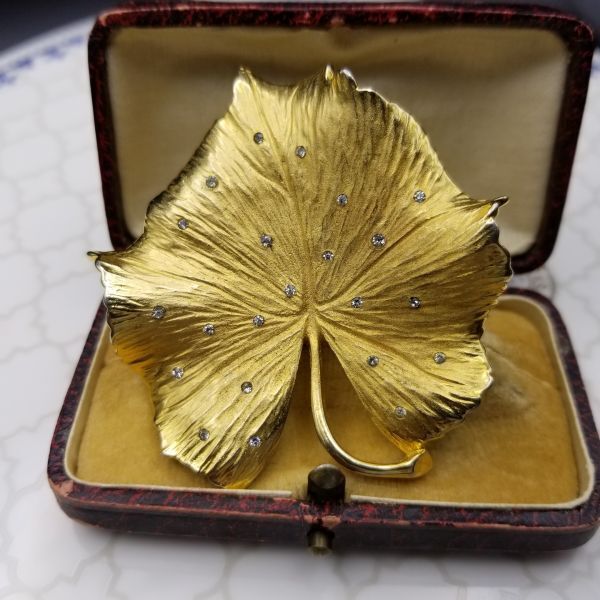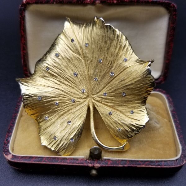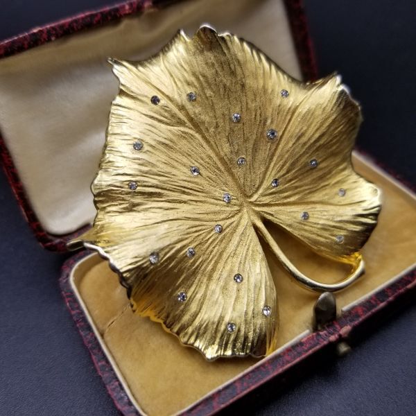 Pennino ゴールドの葉 リーフ クリアラインストーン ヴィンテージ ブローチ 上品 エレガント ジュエリー 存在感 Leaf Y15-C