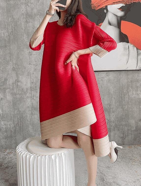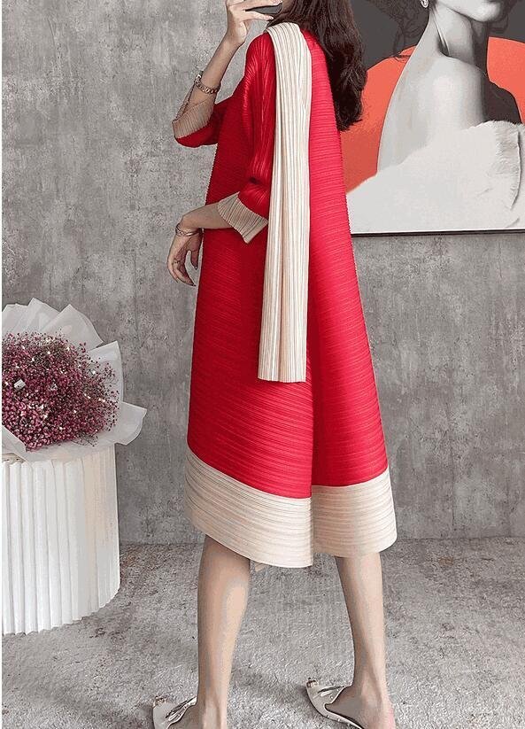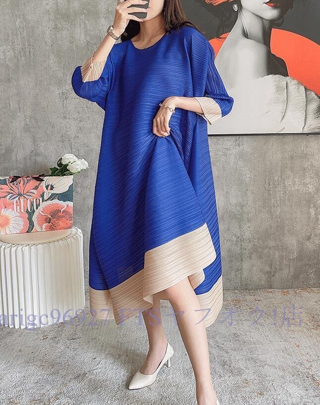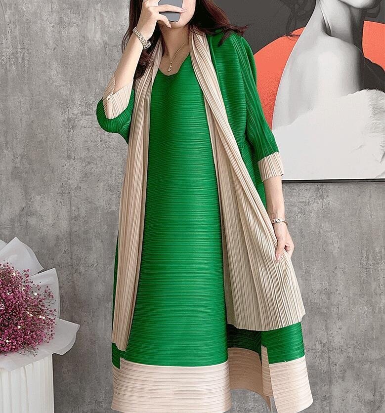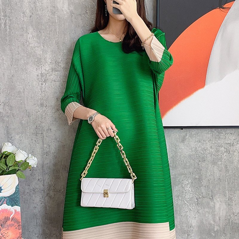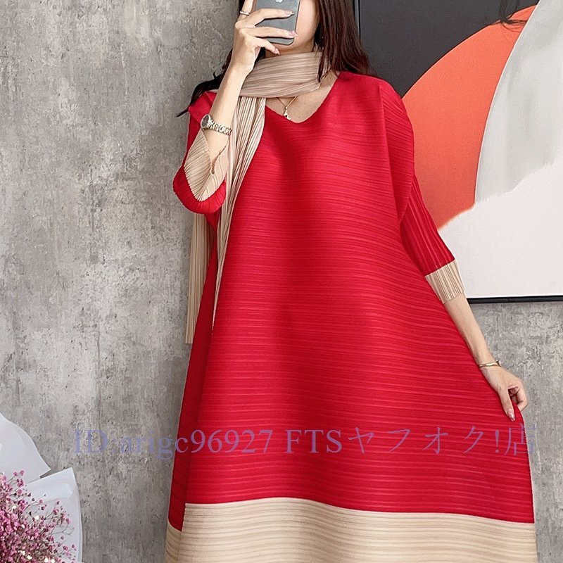 B0529☆新品レディーストップス プリーツワンピース チュニック 弾力がありドレープ性いい スカーフ付き緑色