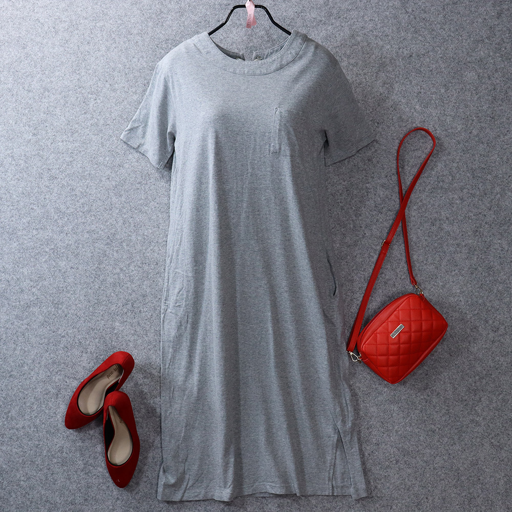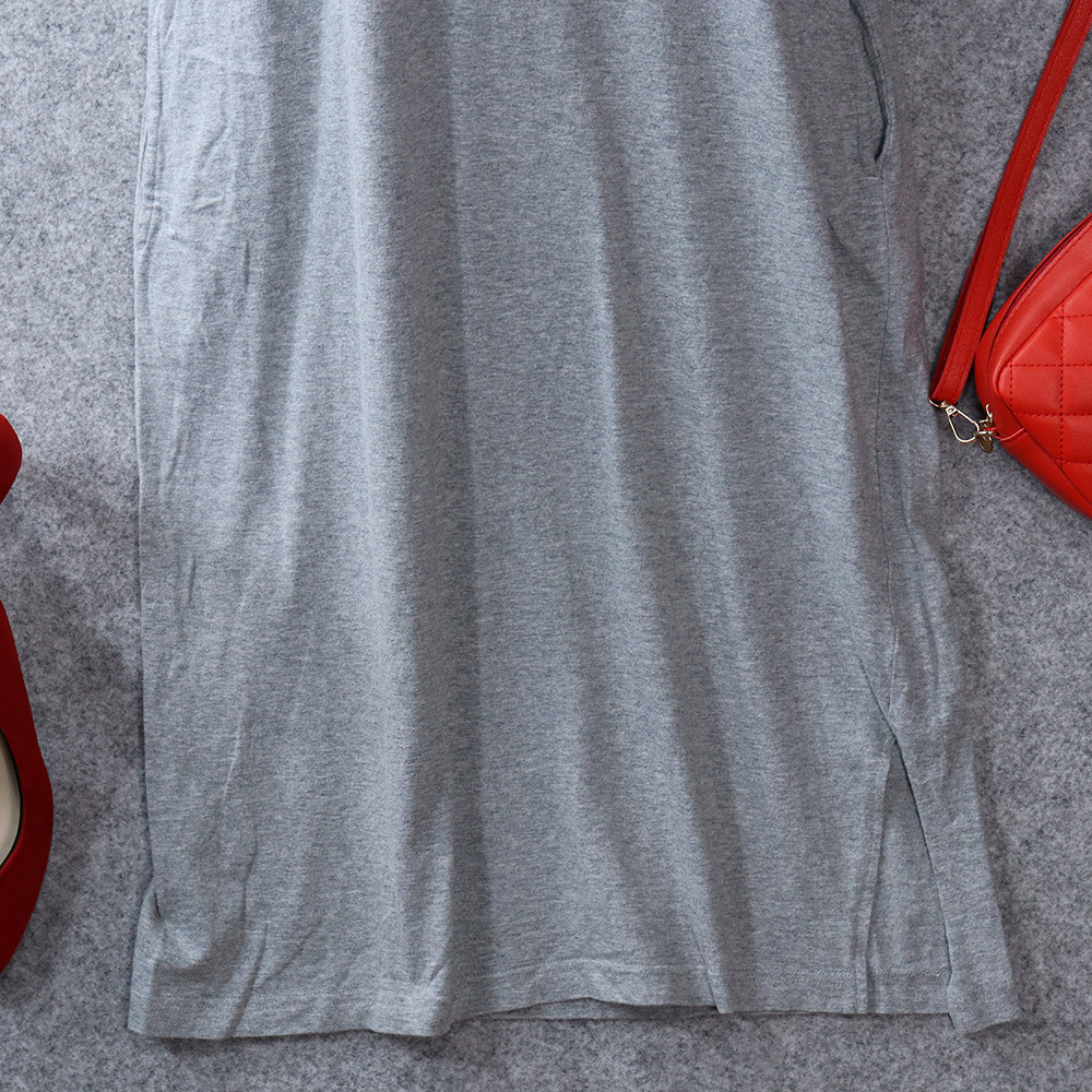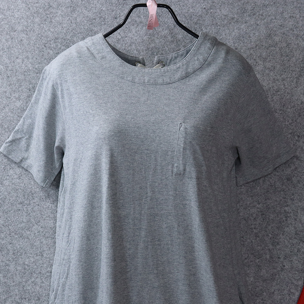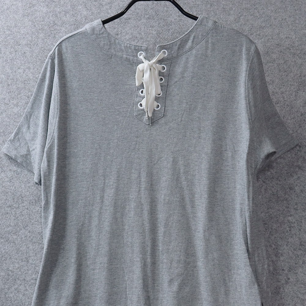 イーハイフン E hyphen world gallery バック編み上げ ロング Iライン カットソーワンピース 半袖 グレー ロング丈 サイドスリット FREE | |||