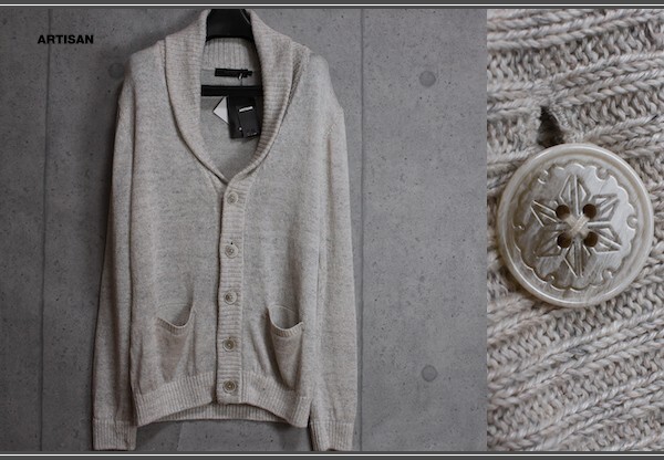 新品 アルチザン メン/ARTISAN MEN 春夏 日本製 リネン100% 大人メランジ ローゲージ ニット ショールカラー カーディガンL/生成り/5万/麻